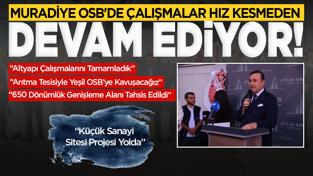 Kıvırcık, çevre yatırımlarına da değinerek, “2020 yılında OSB statüsü kazandırdık, 2021 yılında yönetimi devraldık. O günden sonra çevresel etkileri kontrol altına aldık. Arıtma tesisimizde sona yaklaştık. Geçtiğimiz hafta Ankara’daydım, bütün işlemler tamamlandı. İnşallah yıl sonunda imalatlara başlayacağız. 2027 yılı sonuna geldiğimizde Muradiye OSB, arıtma tesisi olan, çevreye duyarlı ve yeşil OSB statüsüne kavuşacak” diye konuştu.