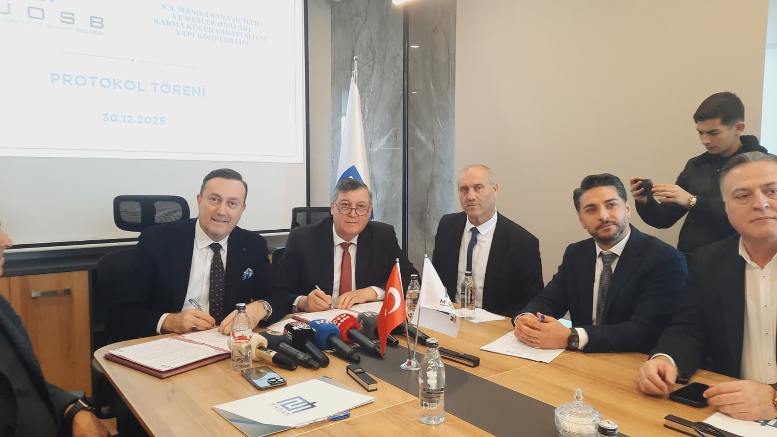 Manisa Muradiye Organize Sanayi Bölgesi Uzunburun Genişleme Alanı’nda, Manisa Sanayiciler ve Meslek Odaları Karma Sanayi Sitesi Yapı Kooperatifi’ne tahsis edilecek bölgede inşa edilecek işyerlerine ilişkin protokol imza töreni, basın mensuplarının katılımıyla gerçekleştirildi.