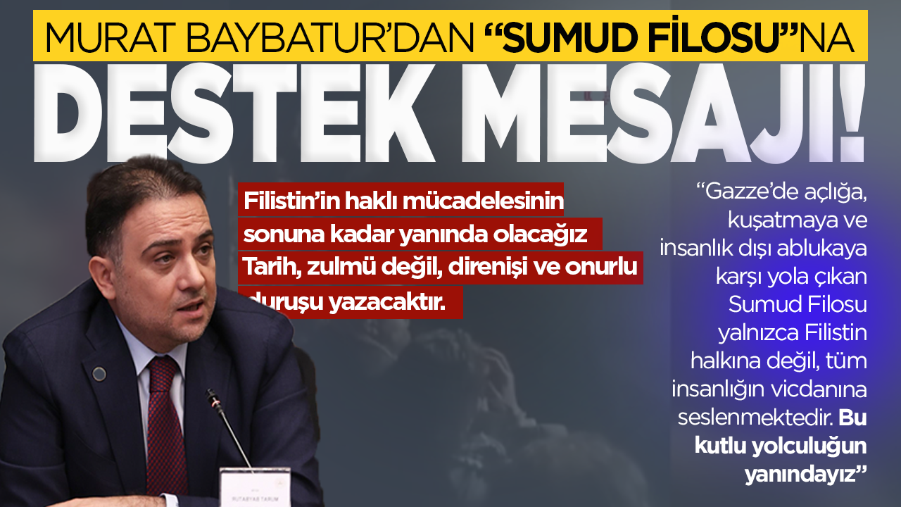 AK Parti Manisa Milletvekili Murat Baybatur, Gazze’ye insani yardım ulaştırmak için yola çıkan Sumud Filosu’na destek mesajı yayımladı.