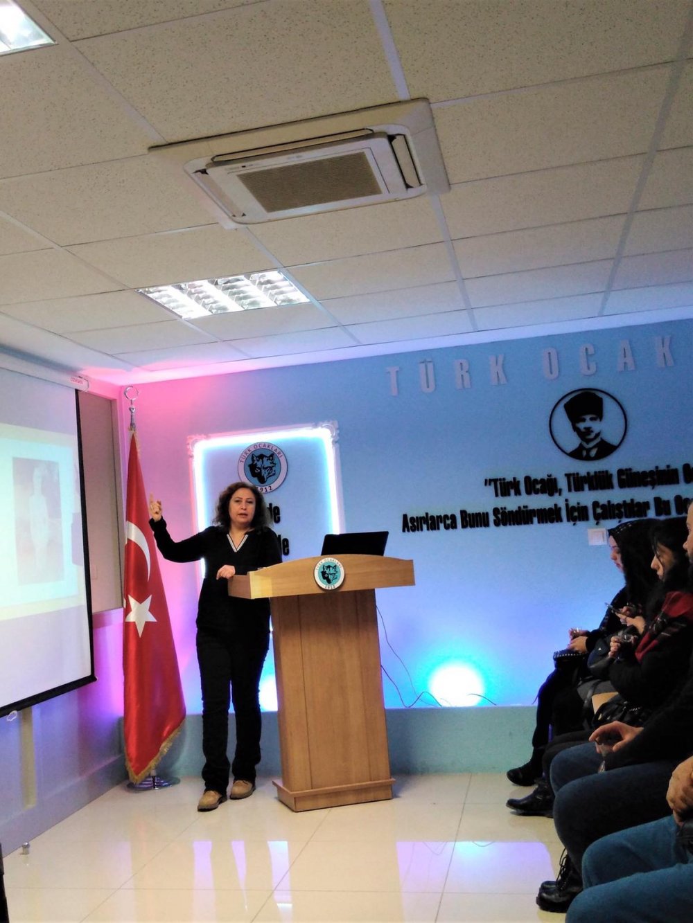 Sohbet sonunda soruları cevaplandıran Dr. Öğr. Üyesi Serap Özkan Kılıç’a plâketini ve katılım belgesini MCBÜ Fen Edebiyat Fakültesinden Dr. Öğr. Üyesi Arzu Taşcan verdi.
