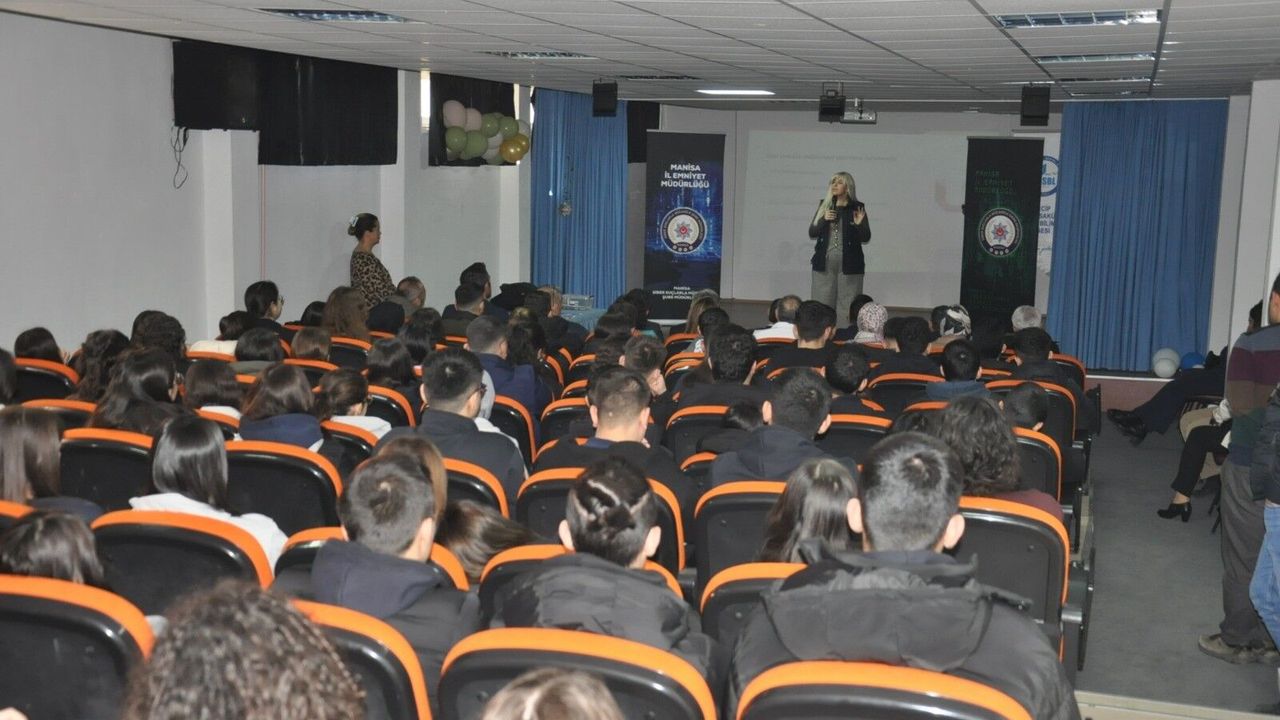 Manisa İl Emniyet Müdürlüğü Siber Suçlarla Mücadele Büro Amirliği’nden polis memurları Gülçin Bulut ve Kemal Bayraklı tarafından verilen eğitimde; IBAN dolandırıcılığı, sosyal medya dolandırıcılığı, siber zorbalık, kimlik hırsızlığı, yetkisiz erişim, internet bağımlılığı ve yasa dışı bahis konuları detaylı şekilde ele alındı.