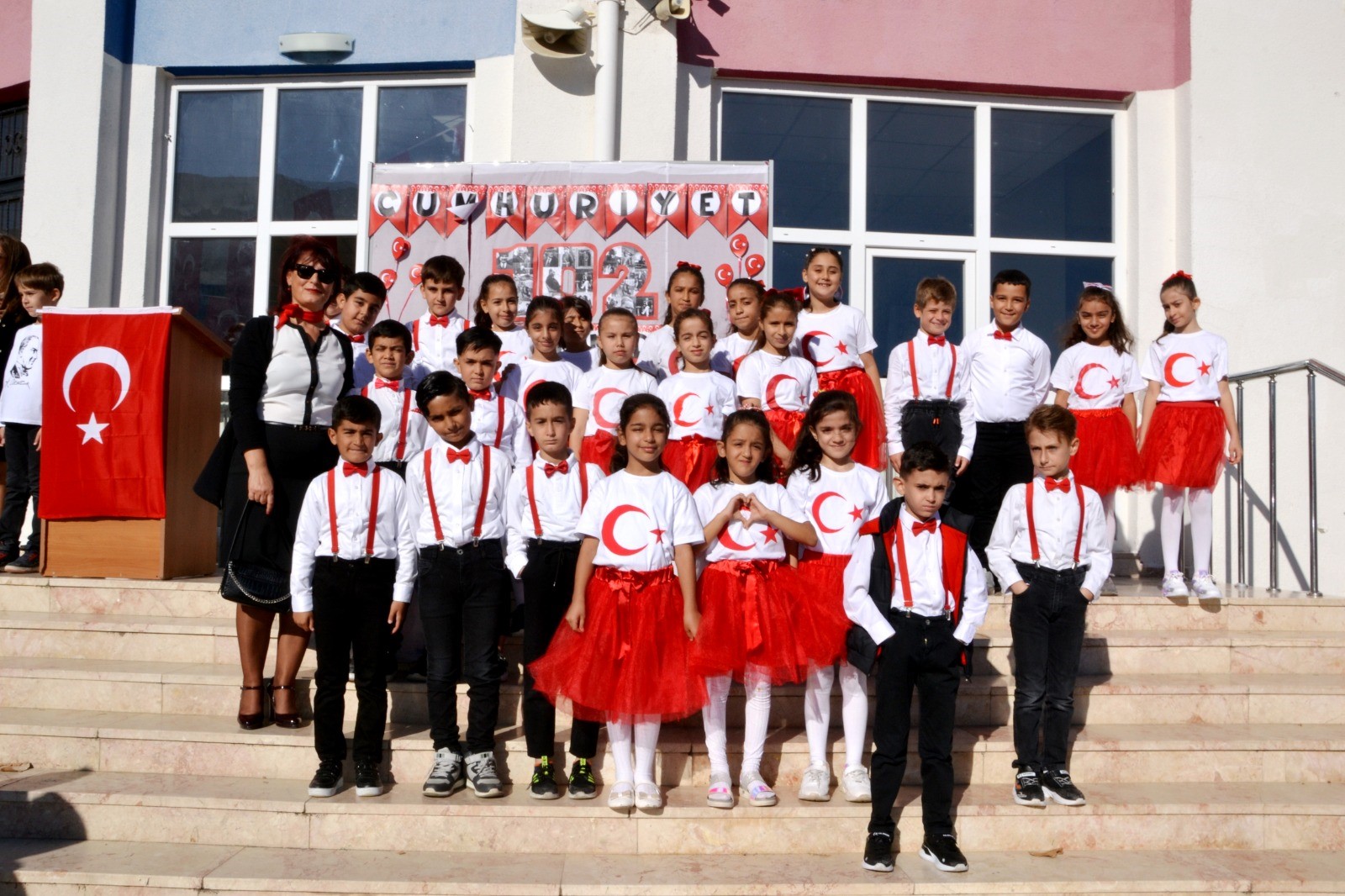 Tören, saygı duruşunda bulunulması ve İstiklal Marşının okunmasıyla başladı. Okul Müdürü Barış Karataş, Cumhuriyet’in 102. yılını kutlamanın büyük bir gurur kaynağı olduğunu ifade ederek, bu günün Türk milletinin tarihindeki önemine dikkat çekti. Öğrenciler kırmızı-beyaz kıyafetleri ve ellerinde Türk bayraklarıyla hazırladıkları gösterilerle izleyenlerden büyük alkış aldı.