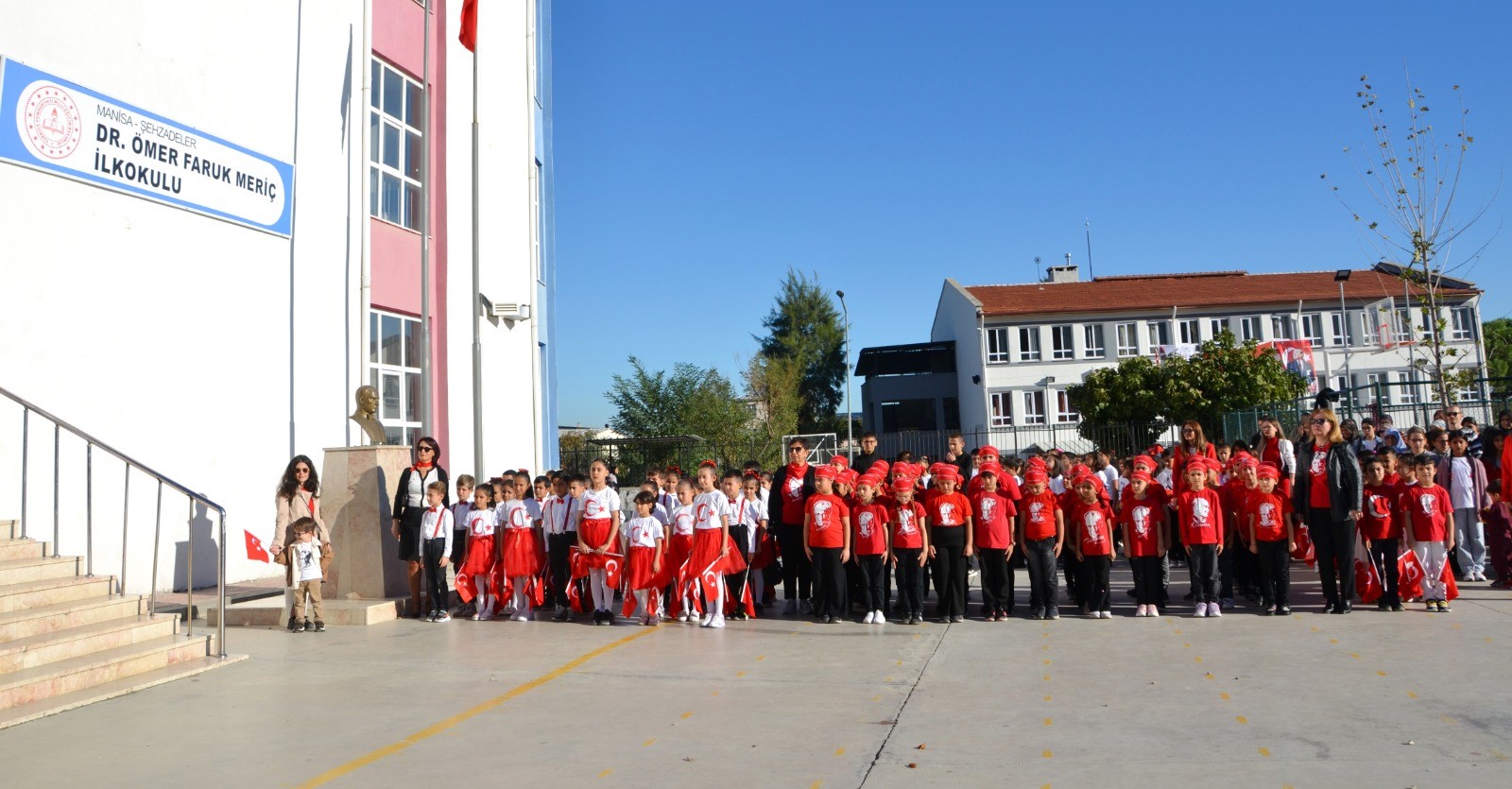 Manisa genelindeki okullarda 29 Ekim Cumhuriyet Bayramı coşkuyla kutlandı. Şehzadeler ilçesinde Dr. Ömer Faruk Meriç İlkokulu’nda düzenlenen törene Ahmet Bedevi Mahallesi Muhtarı Turan Şahin ve Dr. Ömer Faruk Meriç Ortaokulu Müdürü Serkan Doğan da katıldı.