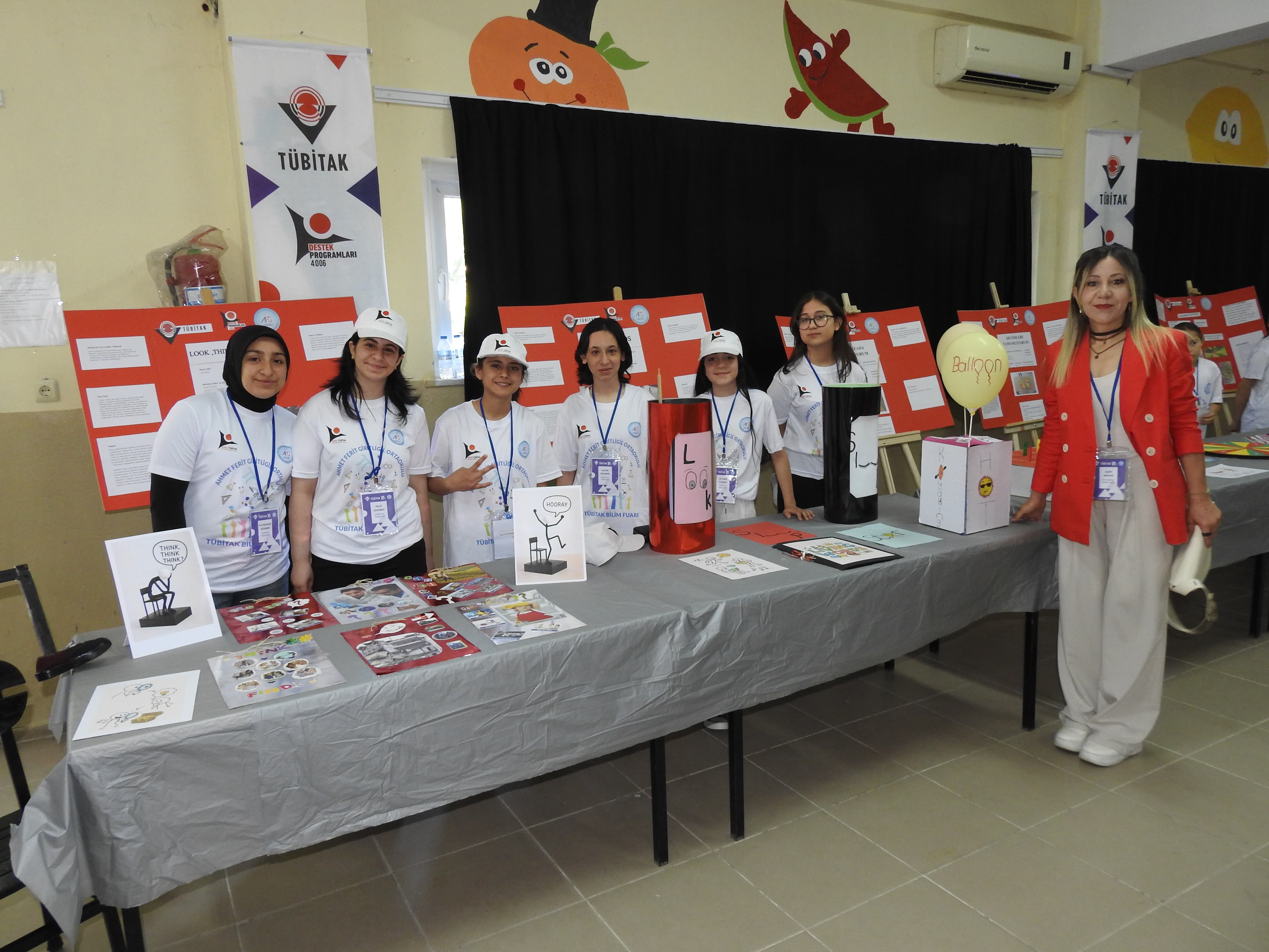 Okul bahçesi ve kapalı spor salonunda kurulan TÜBİTAK 4006 Bilim Fuarı'nda ise ortaokul öğrencilerinin hazırladığı projeler sergilendi. Projeleri tek tek inceleyen protokol üyeleri, öğrencilerden çalışmalar hakkında bilgi aldı.
