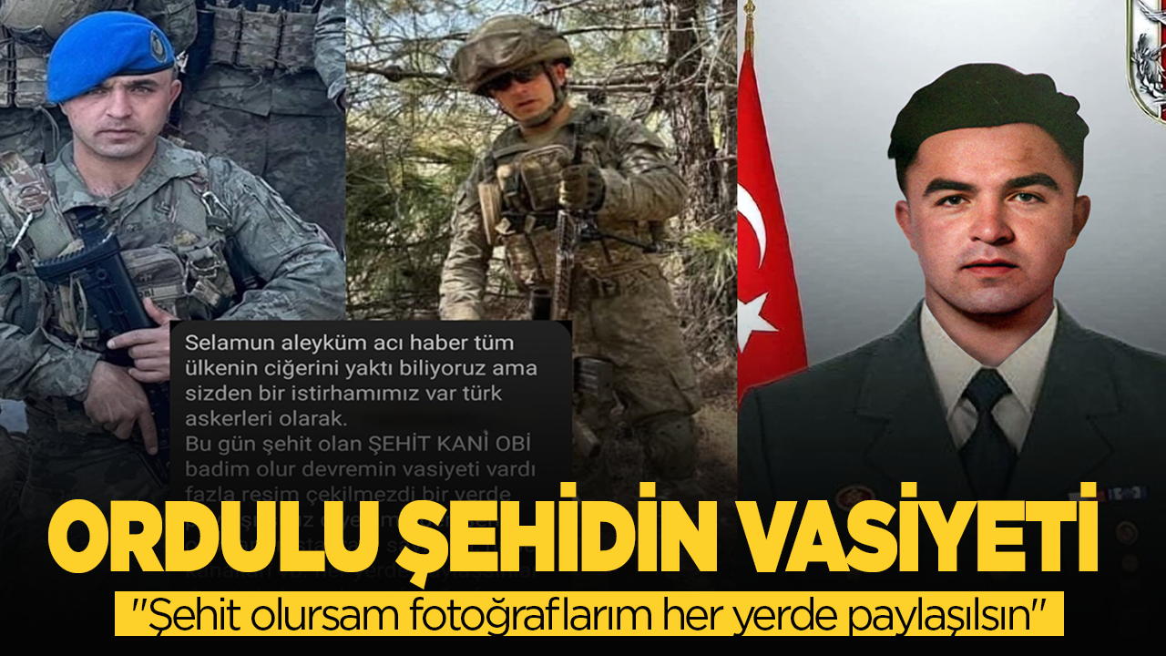 Sosyal medyada paylaşılan bir fotoğrafta; "Bugün şehit olan Kani Obi, badim olur. Devremin vasiyeti vardı; fazla resim çekilmezdi bir yerde paylaşırsınız diye ama ’ben şehit olursam sosyal medya sayfaları, haber kanalları gibi her yerde paylaşsınlar’ demişti" notu düşürdü. Öte yandan Ordulu şehit Kani Obi, yarın Korgan ilçesinde toprağa verilecek.