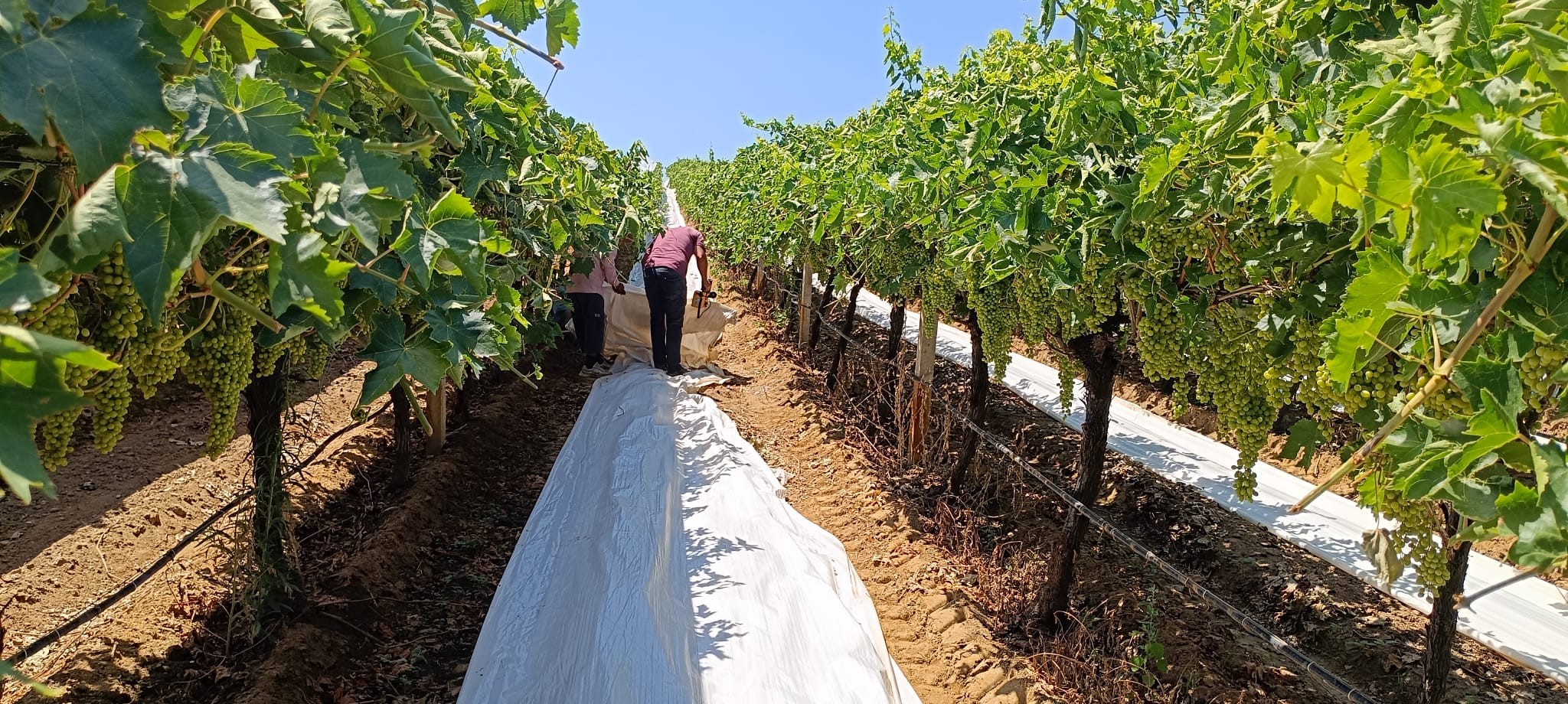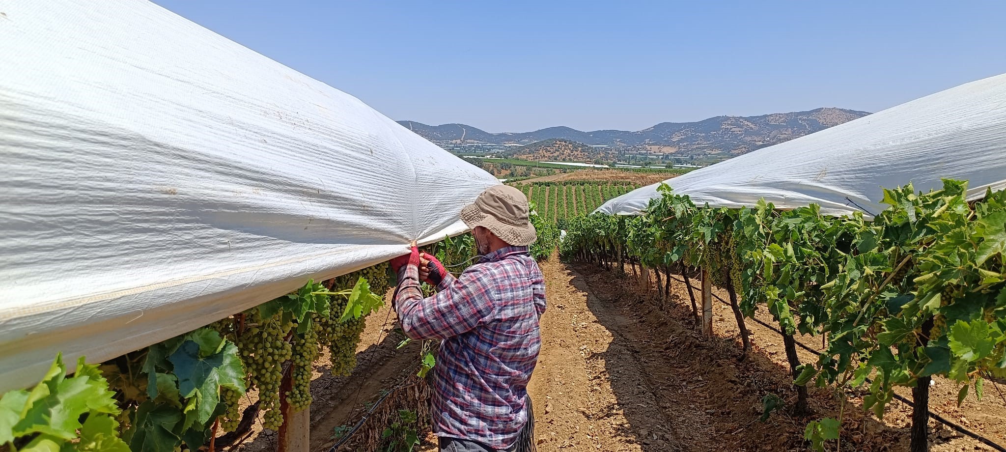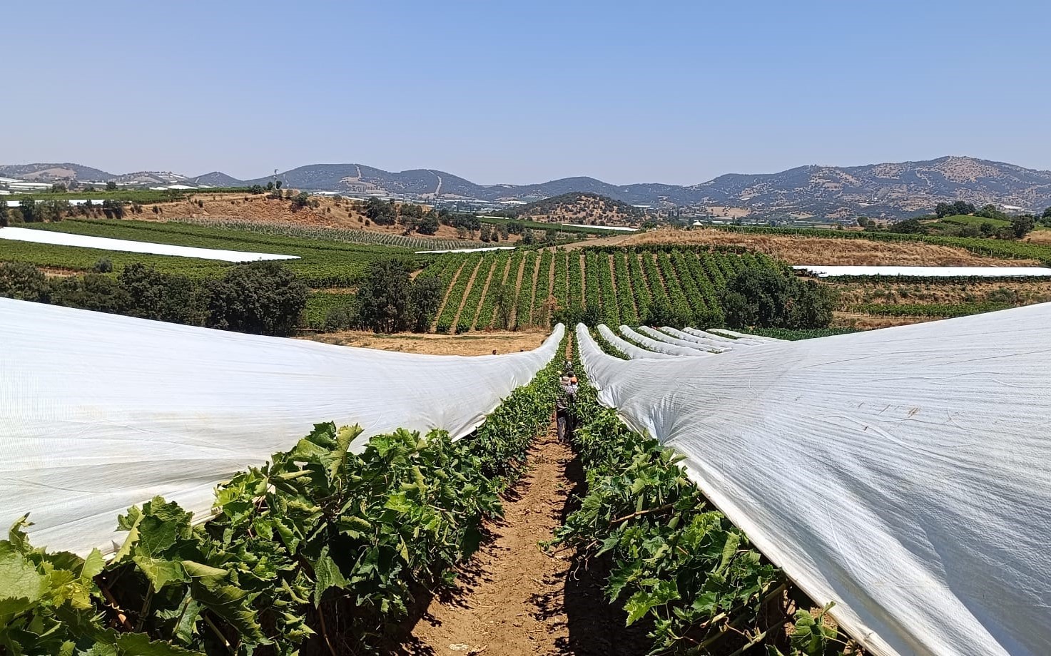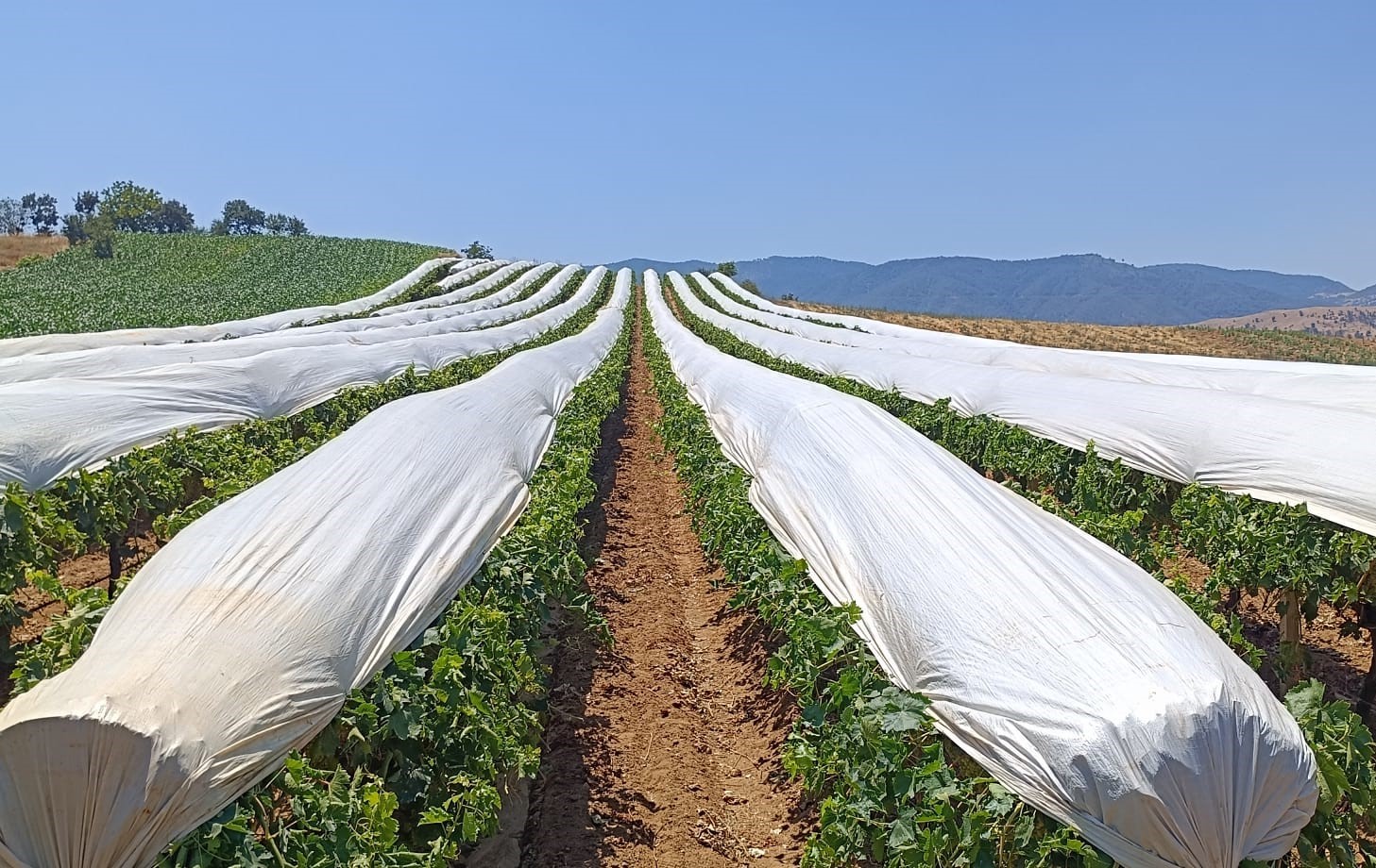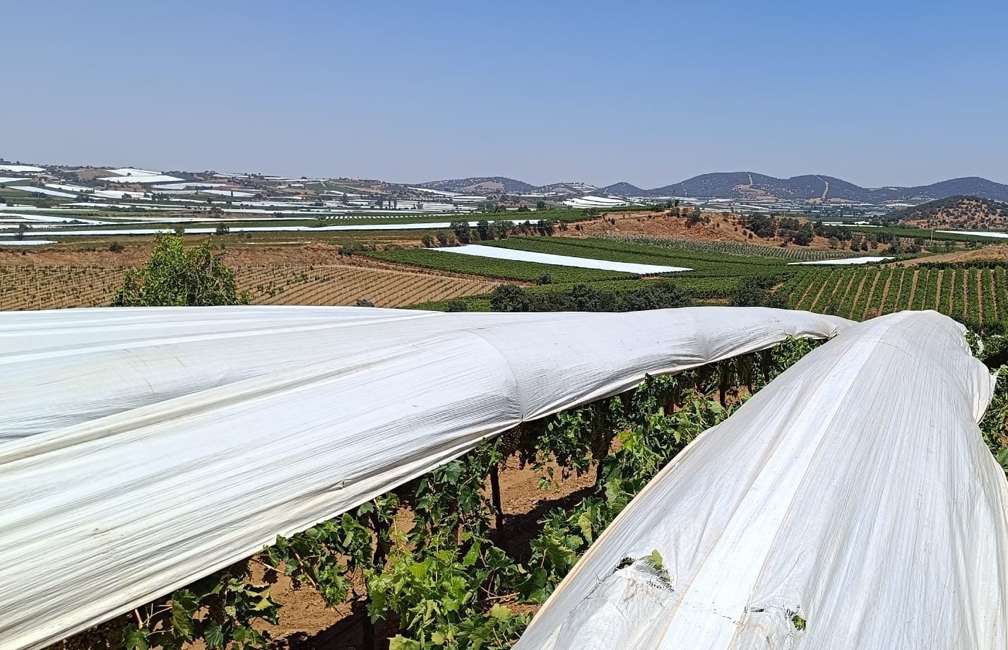Sarıgöl’de örtü altına alınan üzüm bağları, dolu, aşırı güneş, iri yağmur, çiğ ve kırağı gibi doğa olaylarına karşı koruma altına alınmış oluyor.