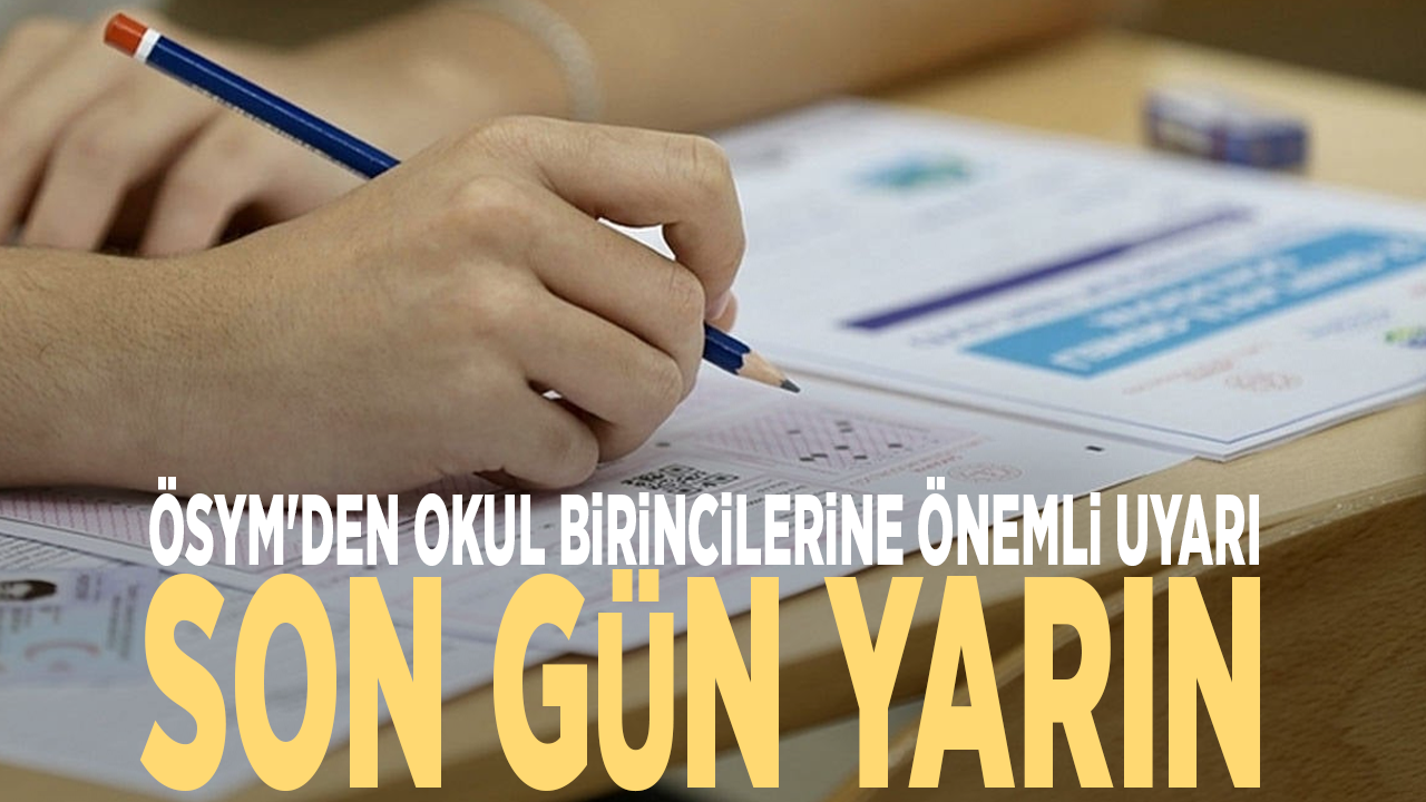 Ölçme, Seçme ve Yerleştirme Merkezi (ÖSYM), Yükseköğretim Kurumları Sınavı'na (2025-YKS) katılan ve okul birinciliği bulunan adaylara, bilgilerini kontrol ederek, eksiklik veya hata olması durumunda 23 Temmuz'a kadar e-Okul sisteminden gereken düzeltmeleri yapmaları gerektiği uyarısında bulundu.
