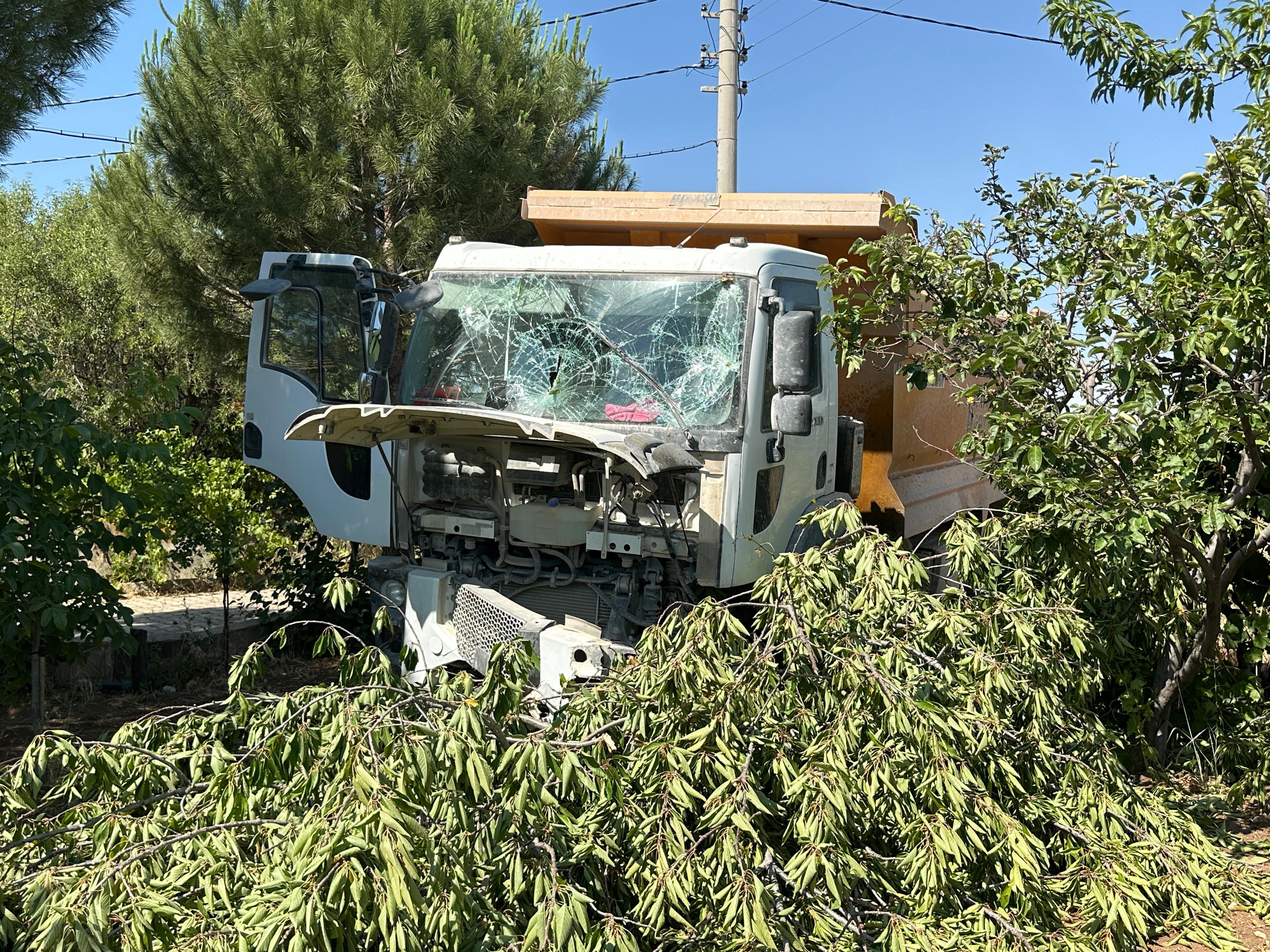 Çarpışmanın etkisiyle otomobil savrulurken, kamyon ise evin bahçesindeki ağaçlara çarparak durabildi.