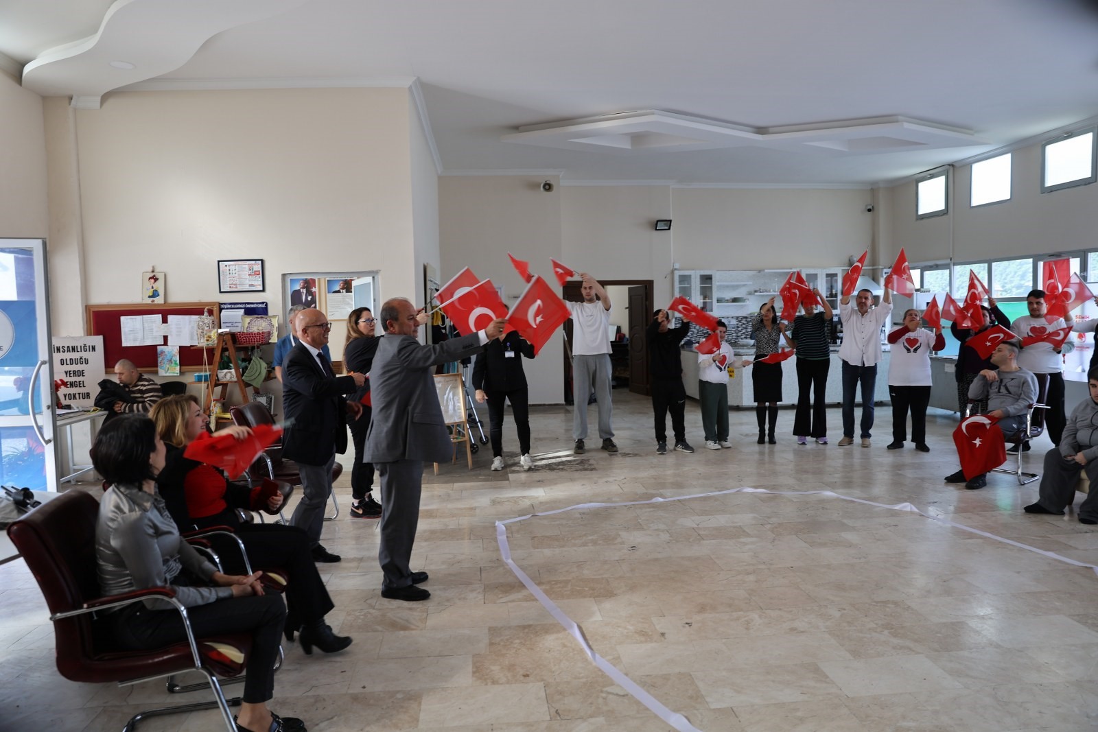 Yunusemre Belediyesi bünyesinde faaliyet gösteren Muradiye Engelsiz Yaşam Merkezi’nde 29 Ekim Cumhuriyet Bayramı etkinliği düzenlendi. Yunusemre Halk Eğitim Merkezi’nden görevli öğretmenler ve merkezde eğitim gören özel ihtiyaçlı bireyler, hazırladıkları gösteriyle bayram coşkusunu yaşadı.