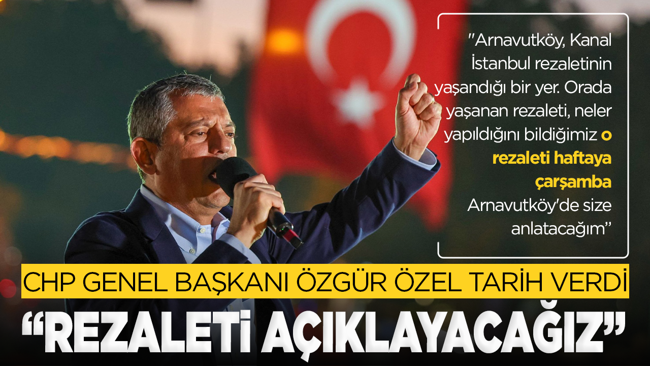 CHP lideri Özel, Kanal İstanbul çalışmalarının devam ettiği Arnavutköy ilçesiyle iligli olarak haftaya çarşamba günü büyük bir rezaleti açıklayacağını duyurdu. Özel, partilileri ve tüm vatandaşları çarşamba günü Arnavutköy'de düzenlenecek olan Millet İradesine Sahip Çıkıyor mitingine davet etti. Arnavutköy'le ilgili rezaleti bu mitingde açıklayacağını işaret etti.