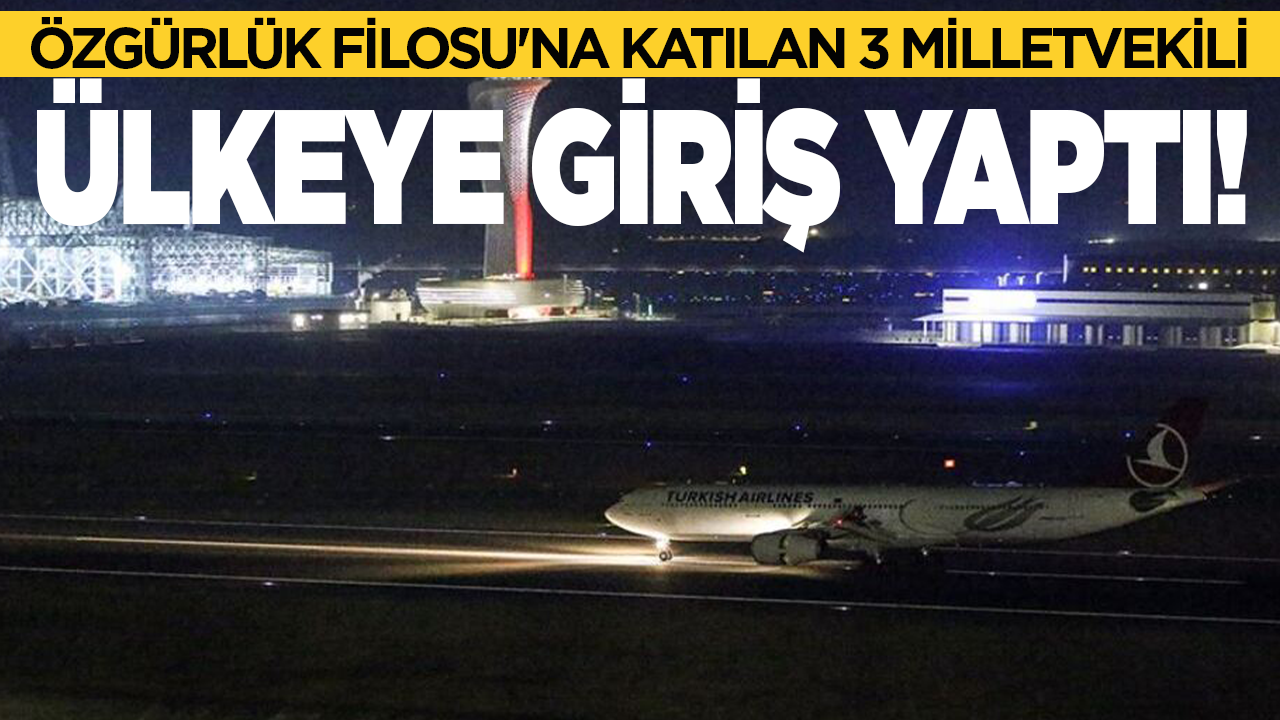 Gazze'ye yardım ulaştırmak için Özgürlük Filosu'na katılan 3 milletvekilin İstanbul Havalimanı'na indi. İsrail tarafından alıkonulan Hatay Milletvekili Necmettin Çalışkan, Denizli Milletvekili Sema Silkin Ün ve Bursa Milletvekili Mehmet Atmaca İstanbul Havalimanı'na indi.