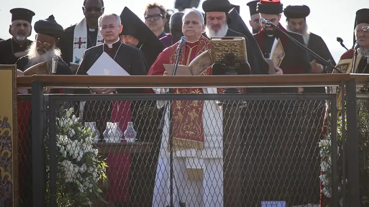 Papa 14. Leo, ilk olarak Harbiye'deki Saint Esprit Katolik Kilisesi'nde (Kutsal Ruh Katedrali) piskoposlar, rahipler, diyakonlar ve ruhani görevlilerle bir araya geldi.