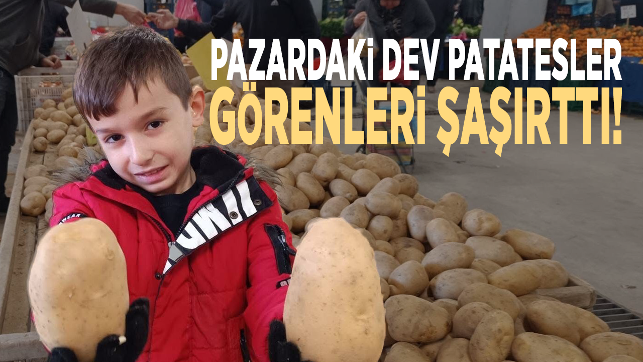 Dev patatesler, çocukların da ilgisini çekti. Anne ve babasından izin alarak tezgaha yaklaşan küçük Yağız Sarıkaya, iki dev patatesi eline alarak fotoğraf çektirmeyi ihmal etmedi.