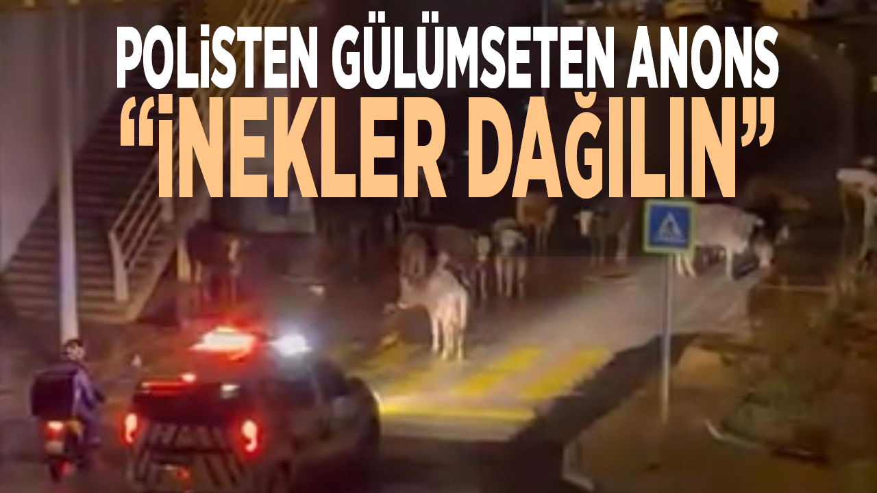 Durumu gören vatandaşların ihbarı üzerine bölgeye polis ekipleri sevk edildi. Olay yerine gelen ekipler, yolu kapatan hayvanları uzaklaştırmak için araç megafonundan "İnekler dağılın" şeklinde anons geçti.