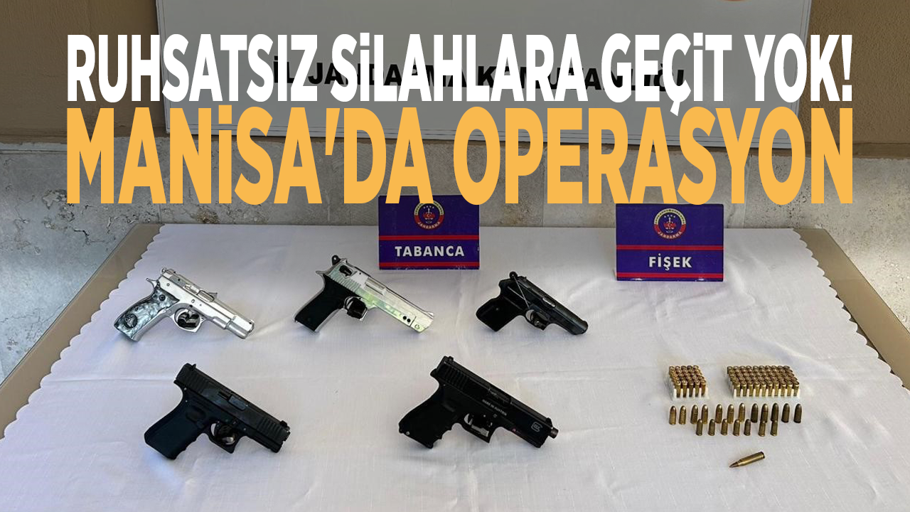 Yapılan aramalarda 5 adet ruhsatsız tabanca ve 94 adet tabanca fişeği ele geçirildi.