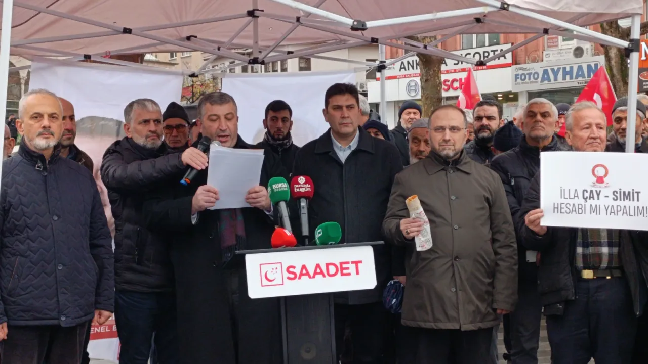 Saadet Partisi Bursa İl Başkanı Ali Osman Karahan 22 bin 104 TL olarak belirlenen asgari ücretin yetersiz olduğunu belirterek, geçmişte 4 TL ile satın alınabilen ürünleri örnek gösterdi.BURSA (İGFA) - Saadet Partisi Bursa İl Başkanı Ali Osman Karahan,  asagari ücretin sonundaki 4 TL ile 2002'de 8 paket makarna, 30 tane yumurta,  dürüm-ayran alınabildiğini belirterek, "Bugün elimdeki şu 4 lirayla, şuradaki bir ciklet dahi alınamıyor" dedi. Karahan, “bugün burada, halkımızı açlık sınırının da altına iten ve emekçiyi yok sayan politikalara karşı duruşumuzu göstermek için bir aradayız. Asgarî değil, insani bir ücret talep ediyoruz; milleti, emekçiyi ezmeyen bir politika talep ediyoruz. diye konuştu.