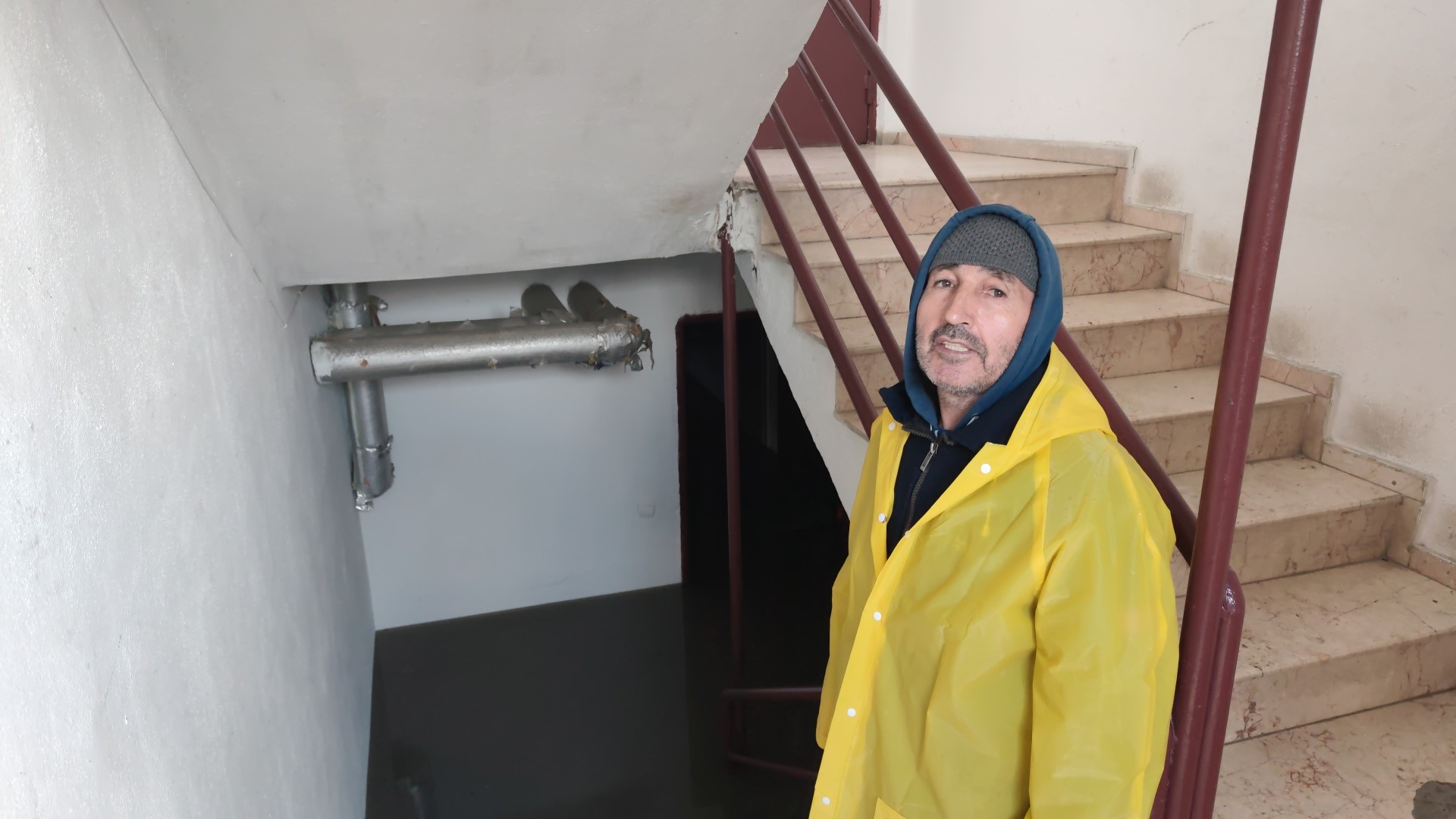 C9 blokta görevli kapıcı Hasan Çiçek, yaşadığı korku dolu anları, "Yağmur başladığında kapıcı dairesindeydim. Bir anda su dolmaya başladı. Tek başımaydım, hemen kendimi dışarı attım" sözleriyle anlattı.