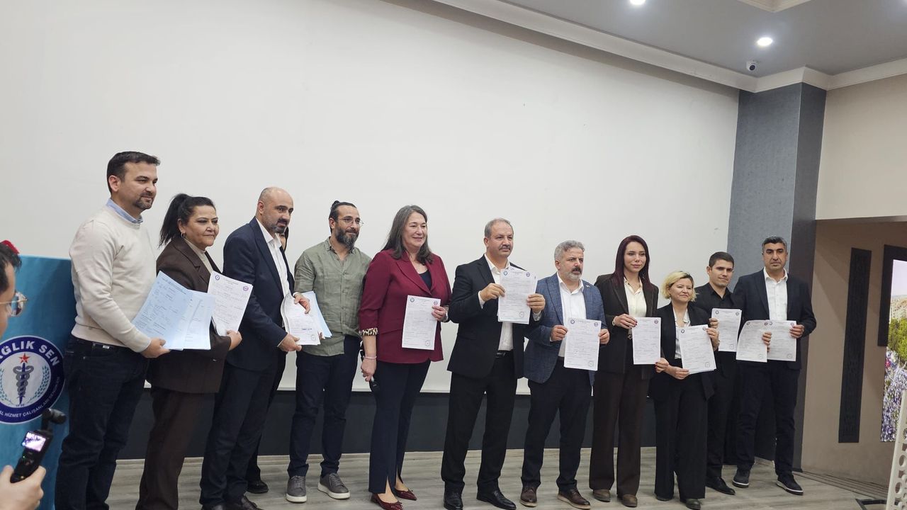 Toplantıda sağlık ve sosyal hizmet profesyonelleri ile buluşan Sağlık-Sen Genel Merkez Yönetimine Aralık ayında yapılan 250 üyelik temsilciler tarafından takdim edildi.