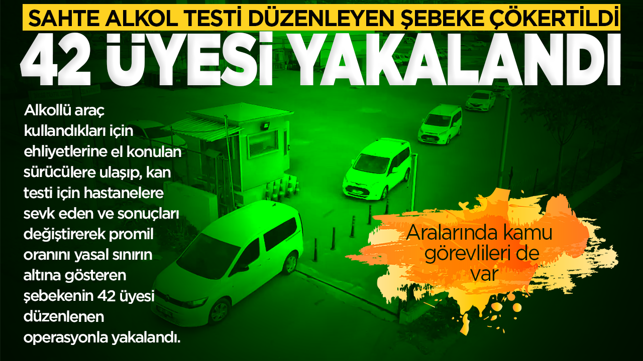 Ehliyetlerini geri alabilecekleri vaat edilen sürücüleri, aynı gün içerisinde sağlık kuruluşlarında yeniden kan verdirdikleri ve farklı yöntemlerle tahlil sonuçlarını değiştirip promil oranlarını yasal sınırın altında gösterdikleri tespit edilen şebekenin 24 üyesi, farklı zamanlarda düzenlenen operasyonlarla yakalandı. Suç şebekesine yönelik soruşturmanın tamamlanmasına yönelik olarak dün ve bugün düzenlenen eş zamanlı operasyonlarda, çok sayıda polis ekibiyle belirlenen adreslere baskın yapıldı. Aralarında kamu görevlilerinin de bulunduğu 18 şüpheli daha gözaltına alındı. Operasyonlar kapsamında gözaltına alınan 42 şüpheli hakkında, adli işlemlerin devam ettiği bildirildi.