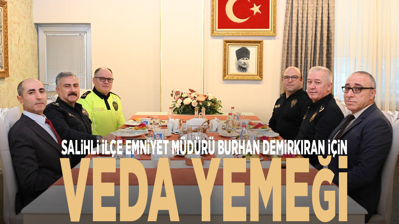 Eylül 2022 tarihinden bu yana Salihli'de başarılı çalışmalara imza atan İlçe Emniyet Müdürü Burhan Demirkıran için Manisa İl Emniyet Müdürü Fahri Aktaş tarafından bir veda yemeği düzenlendi.