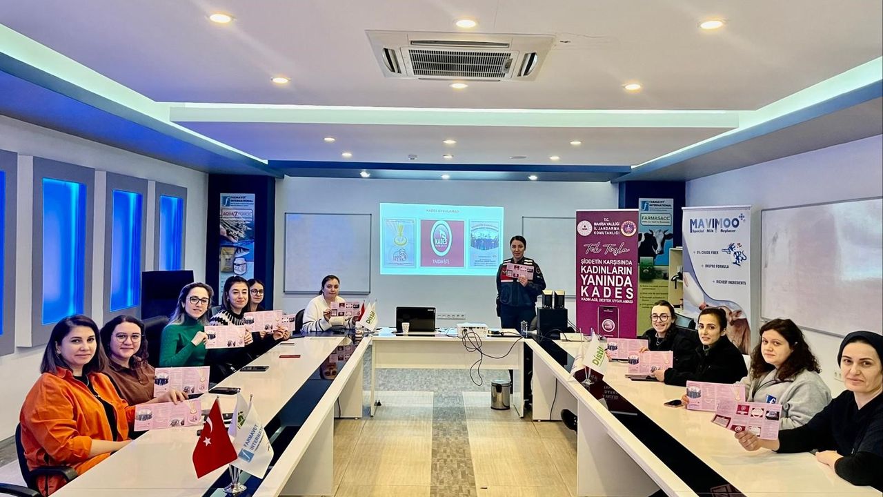Salihli İlçe Jandarma Komutanlığı, kadına yönelik aile içi şiddetle mücadele kapsamında çalışmalarını sürdürüyor. Bu çerçevede Aile İçi Şiddetle Mücadele ve Çocuk Kısım Amirliği ekipleri, Salihli Organize Sanayi Bölgesi’nde(OSB) faaliyet gösteren ve yaklaşık 35 ülkede ihracat faaliyeti bulunan bir firmadaki, erkek personele Kadına El KAL-KA-MAZ projesi hakkında bilgi verilirken, kadın personele ise KADES uygulamasının tanıtımı, kullanımı, uygulamanın sağladığı kolaylıklar anlatıldı.