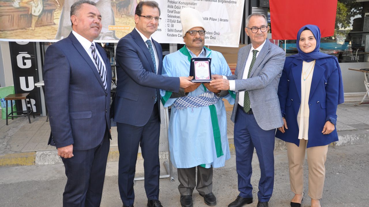 Törende, "Yılın Ahisi" seçilen Nuri Emre'ye şed kuşatılarak plaket takdim edildi. Ayrıca, 12 esnaf odası üyesine de hizmet plaketleri verildi. Esnaf duasının ardından program geleneksel ahi yemeği ile sona erdi.