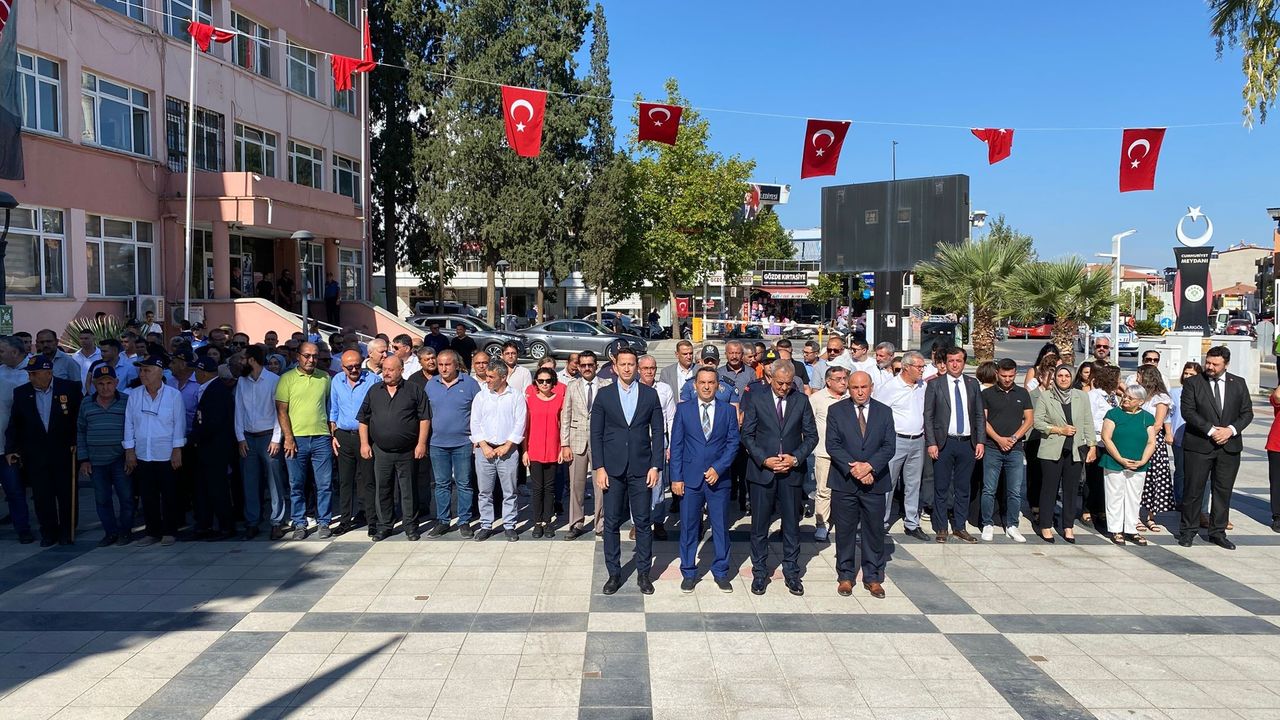 Sarıgöl Hükümet Konağı önünde gerçekleştirilen törende Atatürk Anıtı’na çelenk sunulmasının ardından saygı duruşunda bulunuldu ve İstiklal Marşı okundu.