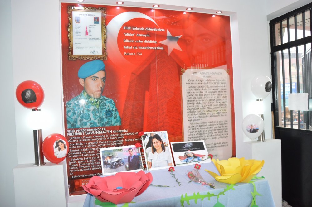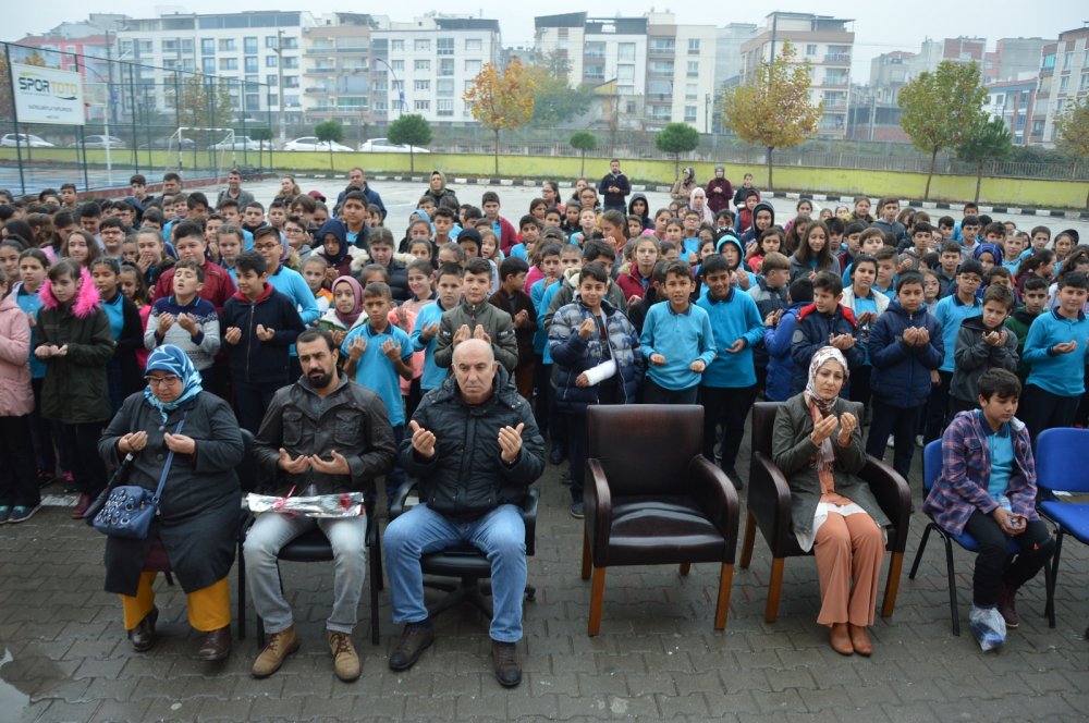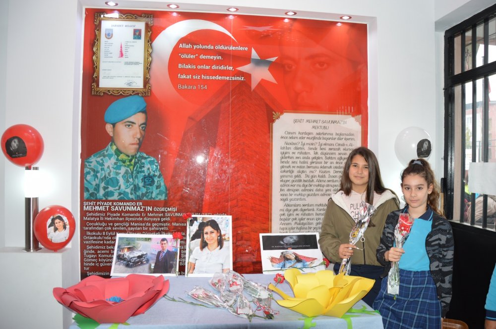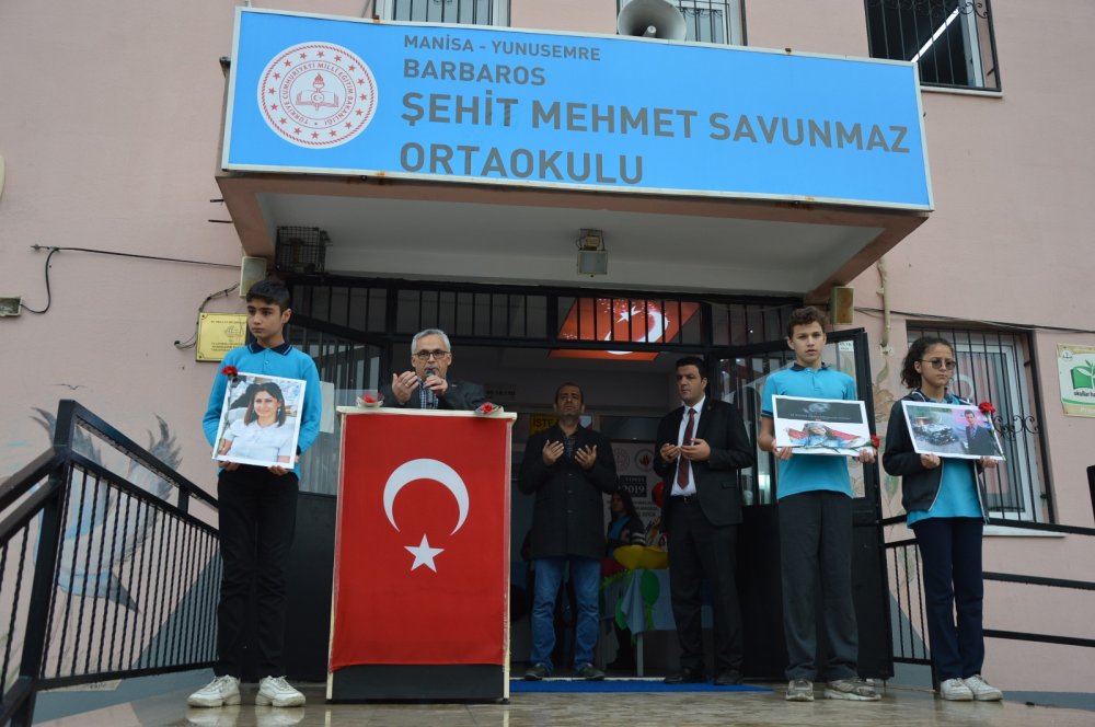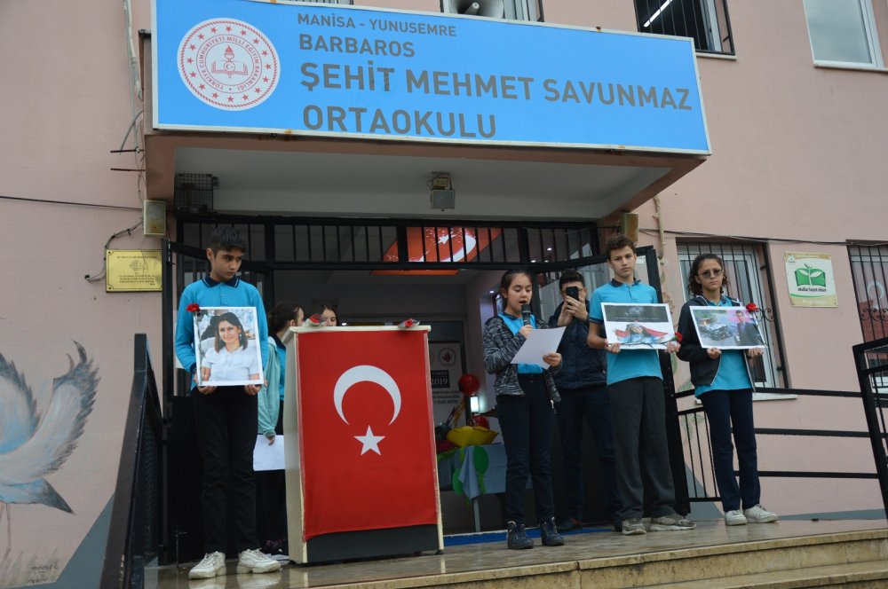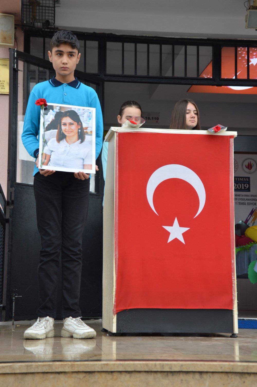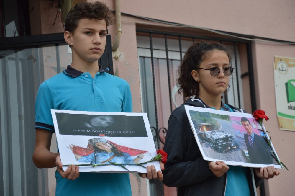Okul Müdürü Mehmet Emin Efe yaptığı açıklamada, "Bizler burada 24 kasım öğretmenler günü kutlama programı için toplanmadık. Bizler bağımsız Türkiye için vatan evladı yetiştirebilmek uğruna canlarını seve seve feda eden ve görev uğruna şehit olan öğretmenlerimizi yad etmek adına burada toplandık. Vatanın her yanı bizim, Hakkari ye de gidip öğreteceğiz. Kimi de Ben kürt çocuğuyum, ben tunceli ye gitmezsem İzmirli nasıl gelsin diyerek göreve başlamış. Görev yerlerinde öğrettikleri ile umut olmuşlar. Canlarını bağımsız Türkiye için verip, tarihe kahraman olarak yazıldılar. Onlar Türkiye nin dört bir yanında vatan ve bayrak için şahadet destanları yazdı. Onlar çocuklarının derdine düşmüşken, birer birer toprağa düşürdüler, Aybüke öğretmenleri, Recep Çakır öğretmeni, yol keserek şehit ettiler fidan gibi delikanlı Necmettin öğretmenleri. 25 günlük Neşe Altan öğretmen, 21 yaşında can verdi vatanı uğruna. Elinde eğitim meşalesi kalemi ile yıllarca okuyup hayalini kurduğu çocuklarına doymadan. Aybüke öğretmen, çok yakın tarihte şehit edildi. Hain kurşunlarla memleketine giderken çok özlediği ailesine kavuşması için birkaç saatlik yolu kalmışken. Ve Necmettin öğretmen. Nasıl anlatılır, nasıl söylenir hangi kalem ile ifade edilebilir ki yaşattığı acıyı. Evine saatler kala yolu kesiliyor. Aracından alınıyor ve sonrası yürekleri paramparça eden bir şehadet. Kalemden korkan hainler, cehaletten beslenenler öğretmenleri şehit ederek söndürecekler sandılar eğitimin meşalelerini. Oysa yepyeni pırıl pırıl meşaleler alıyor her geçen gün Aybükelerin, Mehmet Saygüderlerin, Necmettin şehitlerin yerini ve daha niceleri. Şüphesiz ki ben bir öğretmen olarak gönderildim diyen kainatın efendisi Hz. Muhammet'i Bana bir Harf öğretenin 40 yıl kölesi olurum diyen Hz. Ali'yi. Fatihleri yetiştiren Akşemsettinleri. Öğretmeni kandile benzeterek kendini tüketerek ışık verdiğini söyleyen Başöğretmen Mustafa Kemal Kanlarını canlarını bu vatan uğruna dökmüş tüm Aybükeleri, Neşeleri, Necmettinleri. Bayrak dalgalansın diye canlarını seve seve feda eden Mehmet Savunmazları unutmayacağız , unutturmayacağız" dedi. Öğrenciler çeşitli şiirler okudu. Ardından hep birlikte şehit öğretmenler için dua edildi.