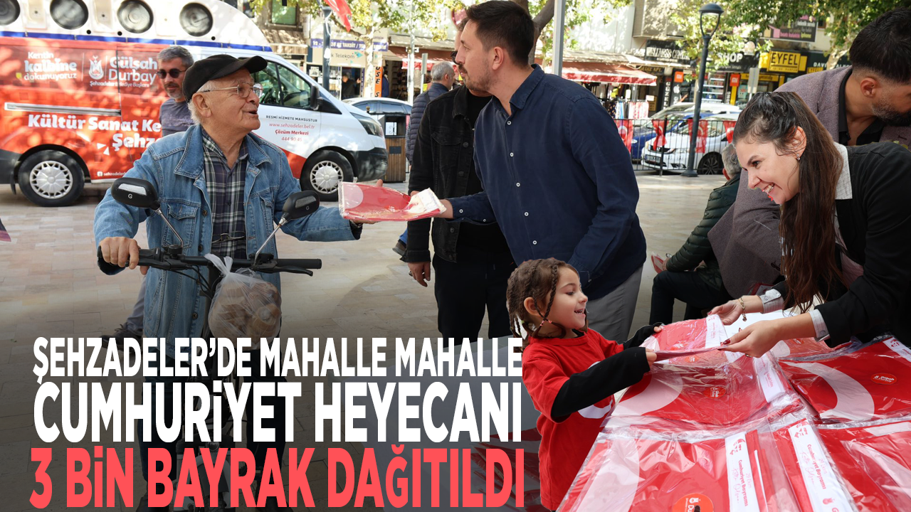 Şehzadeler Belediyesi, Cumhuriyetin ilanının 102. yılı kutlamaları kapsamında ilçe genelinde esnafa ve vatandaşlara Türk bayrağı hediye etti. Şehzadeler’in farklı noktalarında gerçekleştirilen etkinlikte, 3 bin Türk bayrağı dağıtılarak Cumhuriyet Bayramı’nın coşkusu mahalle mahalle paylaşıldı.