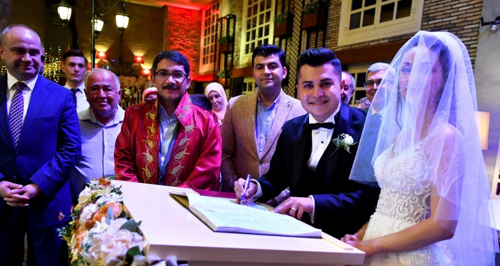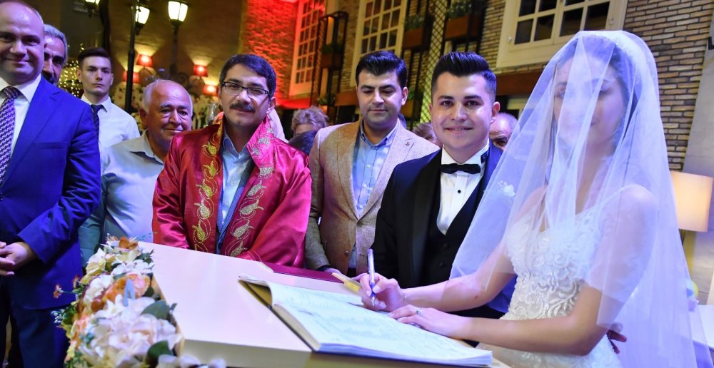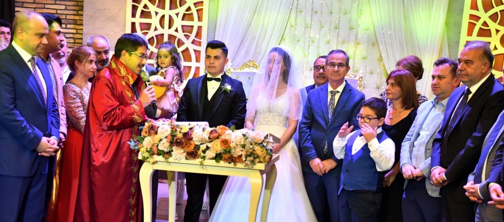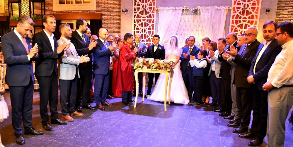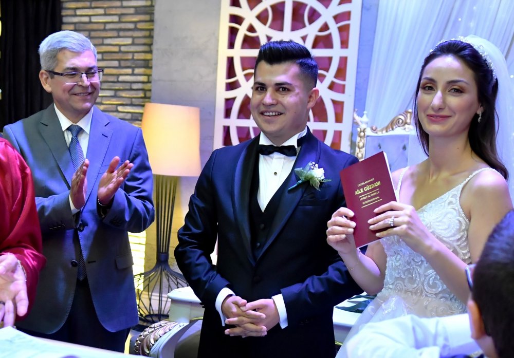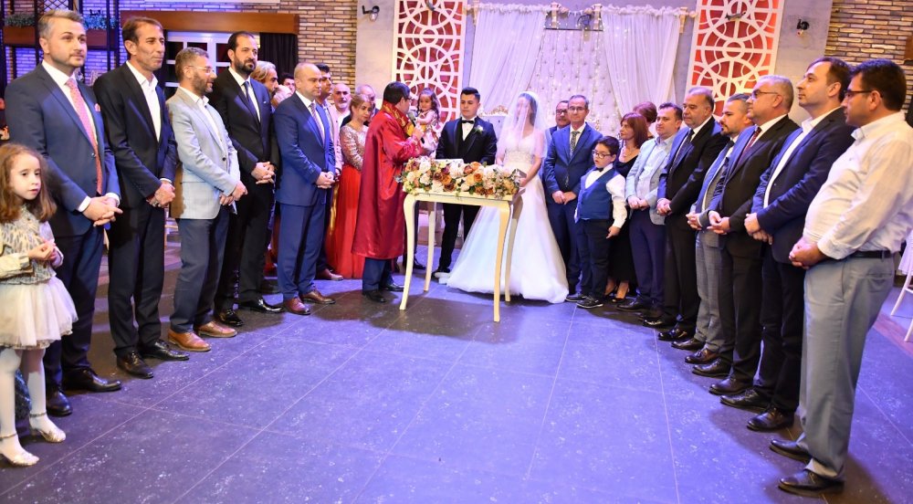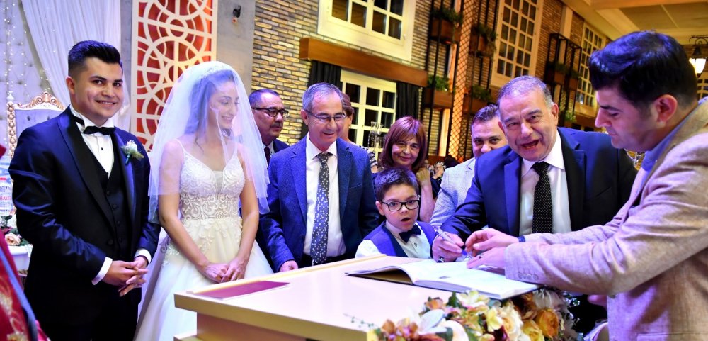 Çiftlerin evlilik cüzdanını gelin Hilal’e veren Başkan Çelik; “Aykut uzun süre benimle birlikte çalıştın diye sana torpil yapacak değilim. Bu kutsal evlilik cüzdanını en iyi saklayabilecek olan Hilal’e veriyorum” dedi. Ak Parti il başkanı Mersinli’de çiftlere Türk Bayrağı ve Kuran-ı Kerim verdi.