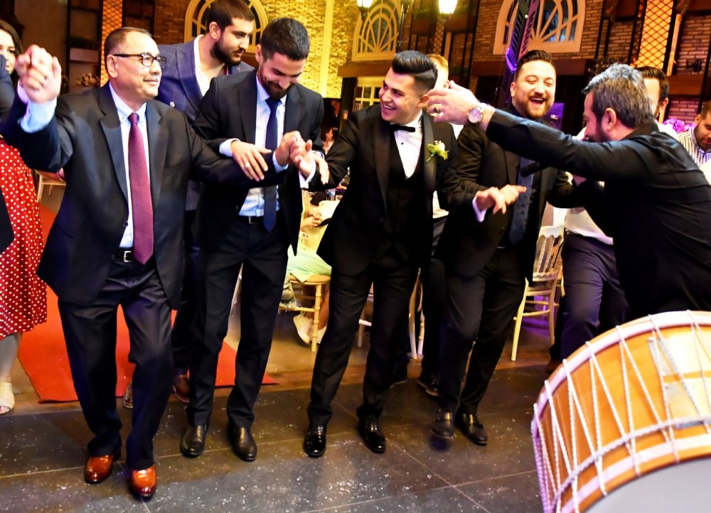 Yaşamı boyunca gitti Ege yöresi oyunlarına eşlik eden gelin Hilal Sarı’nın babası ise İç Anadolu ve Güneydoğu Anadolu yöresi oyunlarında gösterdiği uyum izleyenlerden alkış aldı.