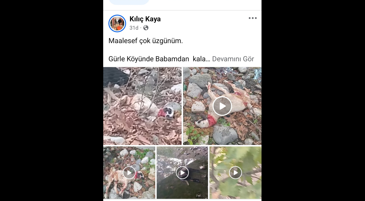 koyunların basina geldigimde panik halde bir köşede sıkıştırıldığını ve oradan oraya koştuklarını fark ettim, 2 sokak köpeğinin avlama pozisyonunda koyunların etrafında olduğunu gördüm, olayı kameraya almak İçin izlemeye başladım, koyunların eksik olduğunuda fark ettim, derenin içinde bir köpeğin öldürdüğü koyunu yediğini, derenin karşısında 2 ayrı köpeğin daha olduğunu, birinin pusuda olduğunu, binin ise diğer bir koyunu yediğini gördüm.