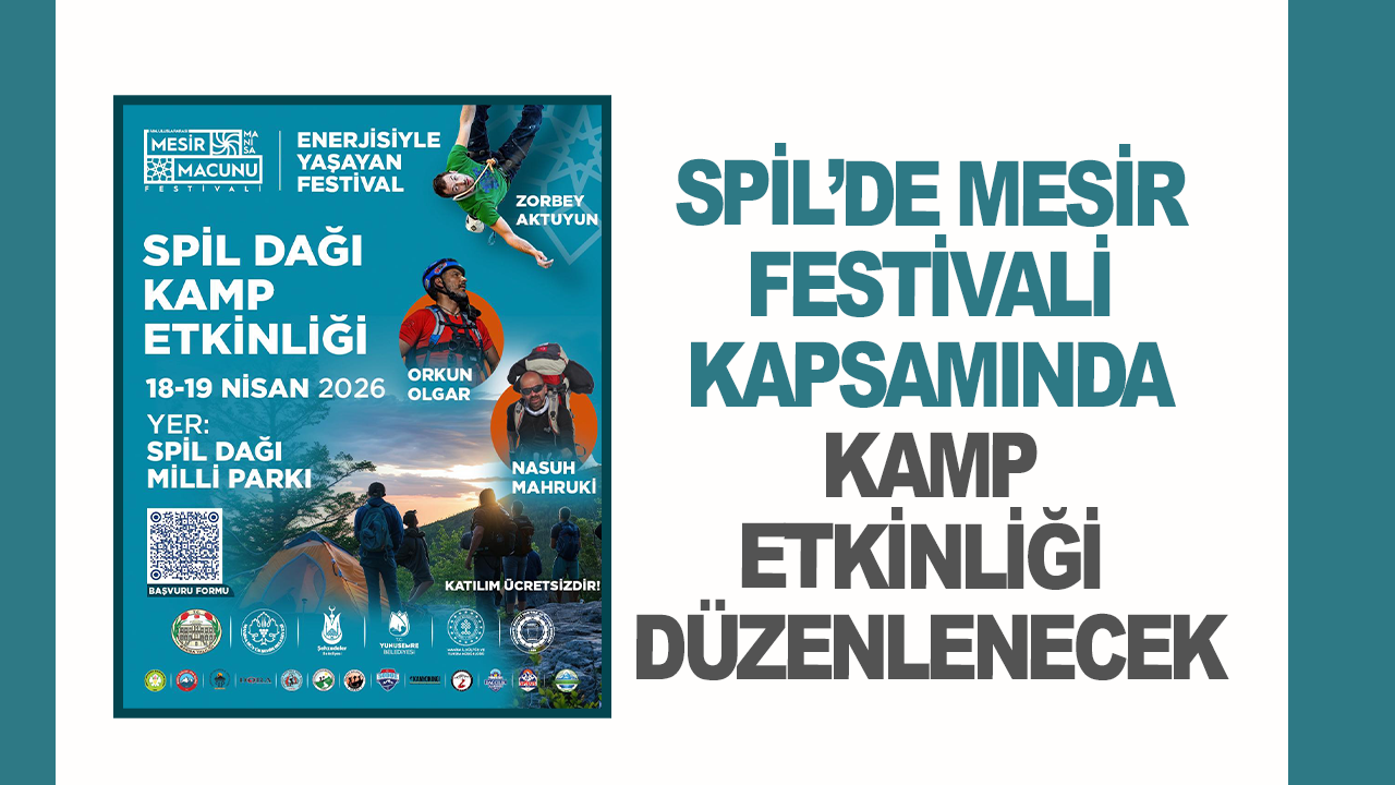 18-19 Nisan 2026 tarihlerinde düzenlenecek etkinlikte doğaseverler, Spil Dağı’nın doğal atmosferinde bir araya gelecek. Programa, dağcılık ve macera alanında tanınan isimler de katılacak.
