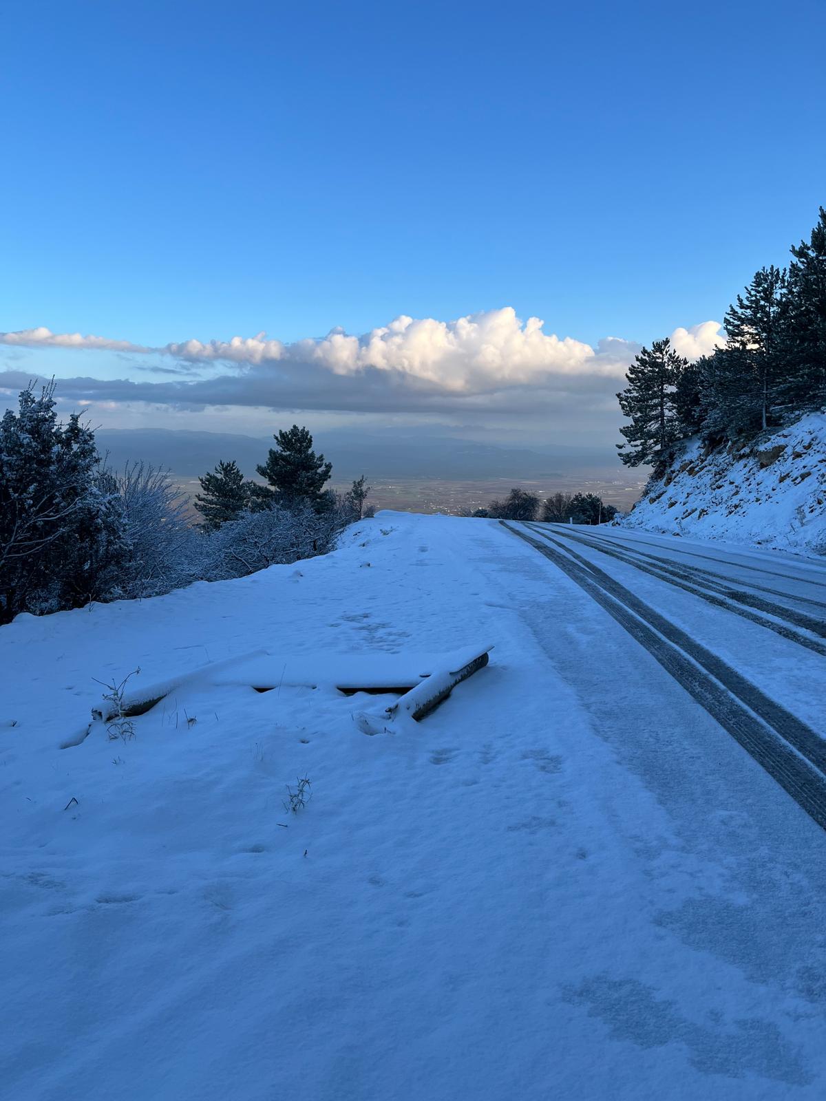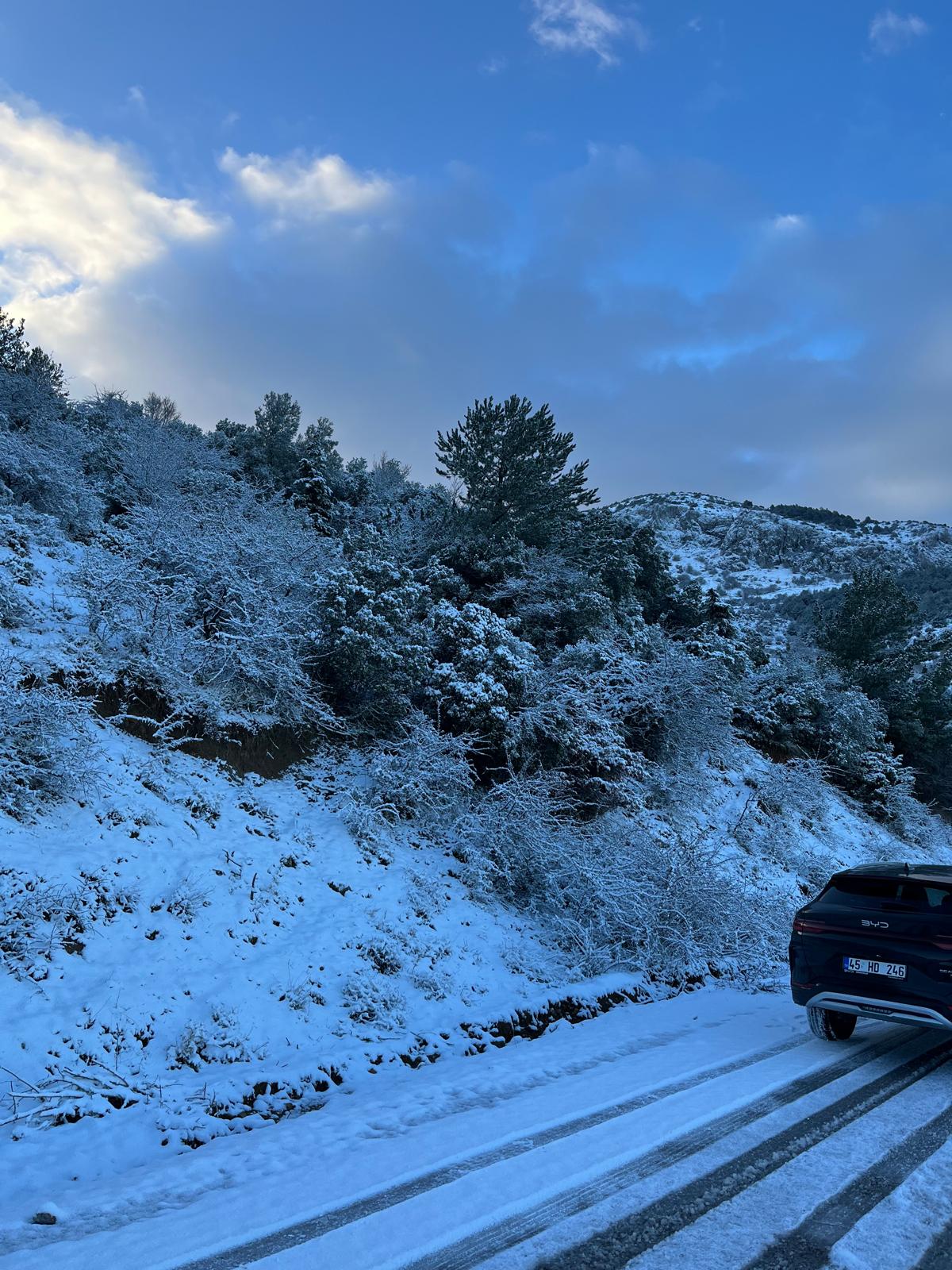 Manisa'da dün yoğun yağmurun ardından dün gece Spil Dağı'nın yüksek kesimlerine kar yağdı.