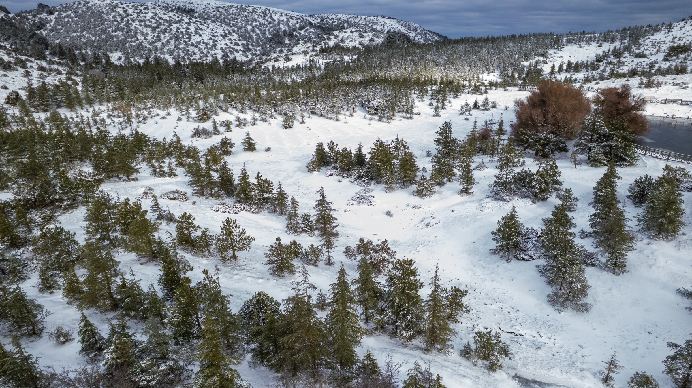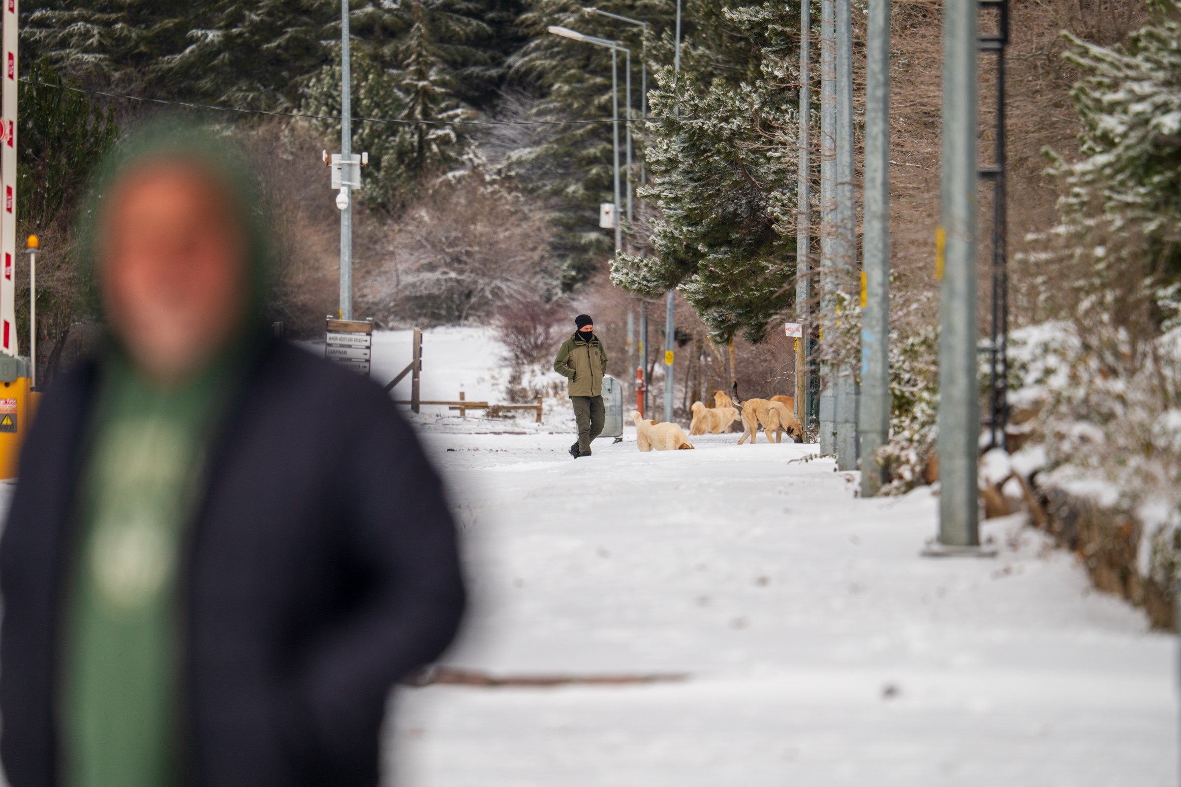 Beyaz örtüyle kaplanan milli parkta görsel şölen yaşanırken, objektiflere ilginç anlar da yansıdı. Parkta bulunan yaklaşık 5 köpeğin, bölgenin sembolü olan bir yılkı atını kovaladığı görüldü. Köpeklerin havlayarak atın peşinden koşturduğu o anlar, karın tadını çıkarmaya gelen vatandaşların da dikkatinden kaçmadı.