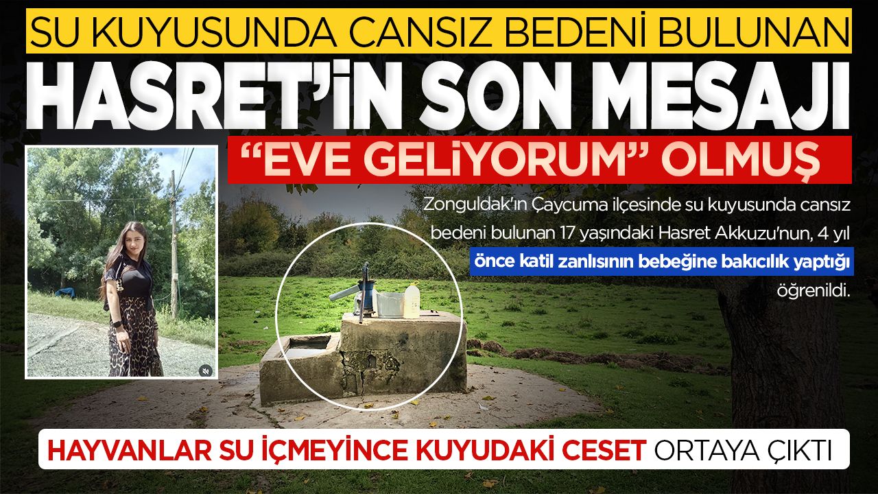Perşembe beldesine bağlı Kızılbel köyünde yaşayan ve geçen 13 Ekim günü ailesinin kayıp ihbarı ile her yerde aranan 17 yaşındaki Hasret Akkuzu'nun cesedi 19 Ekim günü Koramanlar köyündeki su kuyusunda bulundu. Hayvan otlatmak için geldikleri köyde köylüler tarafından bulunan Akkuzu'nun kesin ölüm sebebinin belirlenmesi için Ankara Adli Tıp Kurumu'ndaki kriminal incelemesi sürüyor. Çaycuma Cumhuriyet Başsavcılığınca yürütülen soruşturma kapsamında 6 şüphelinin adliyedeki sorgusu sürerken katil zanlısı olduğu öne sürülen D.B. ise Aydın'da yakalanarak gözaltına alındı.