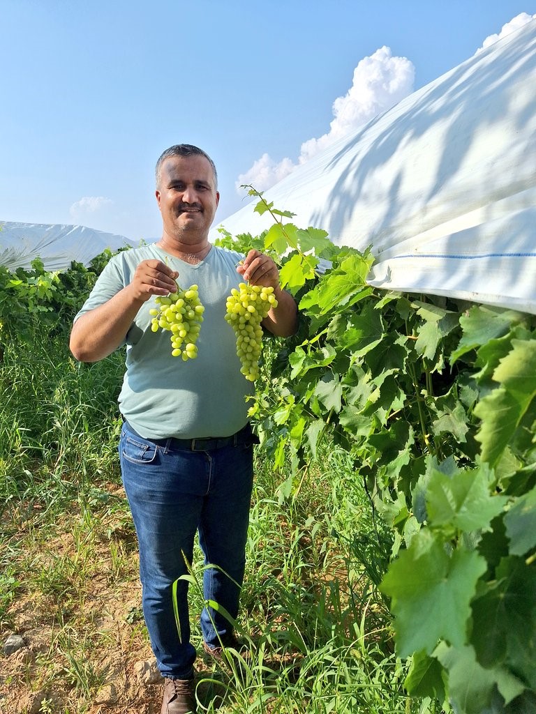 Sarıgöl Ovası’nda üzüm hasadının başlamasıyla birlikte üreticiler, üzüm salkımlarının fotoğraflarını sosyal medyada paylaşarak ürünlerini sergiliyor. Aynı zamanda üzüm simsarlarıyla da iletişime geçerek satış görüşmeleri yapmaya başladılar.