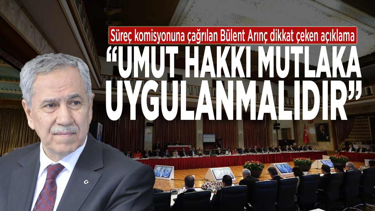 Arınç, "Geldiğimiz nokta denizin bittiği, geminin karaya vurduğu bir noktadır. Eli yukarıdan tutarak başlatan Bahçeli’ye teşekkür ediyorum. Cumhurbaşkanının kararlılığı iradesi ve komisyonun çalışmaları işin yürütücüsü olacaktı. En çok DEM’den çekiniyorduk, DEM öncü oldu, takdir ediyorum" dedi.