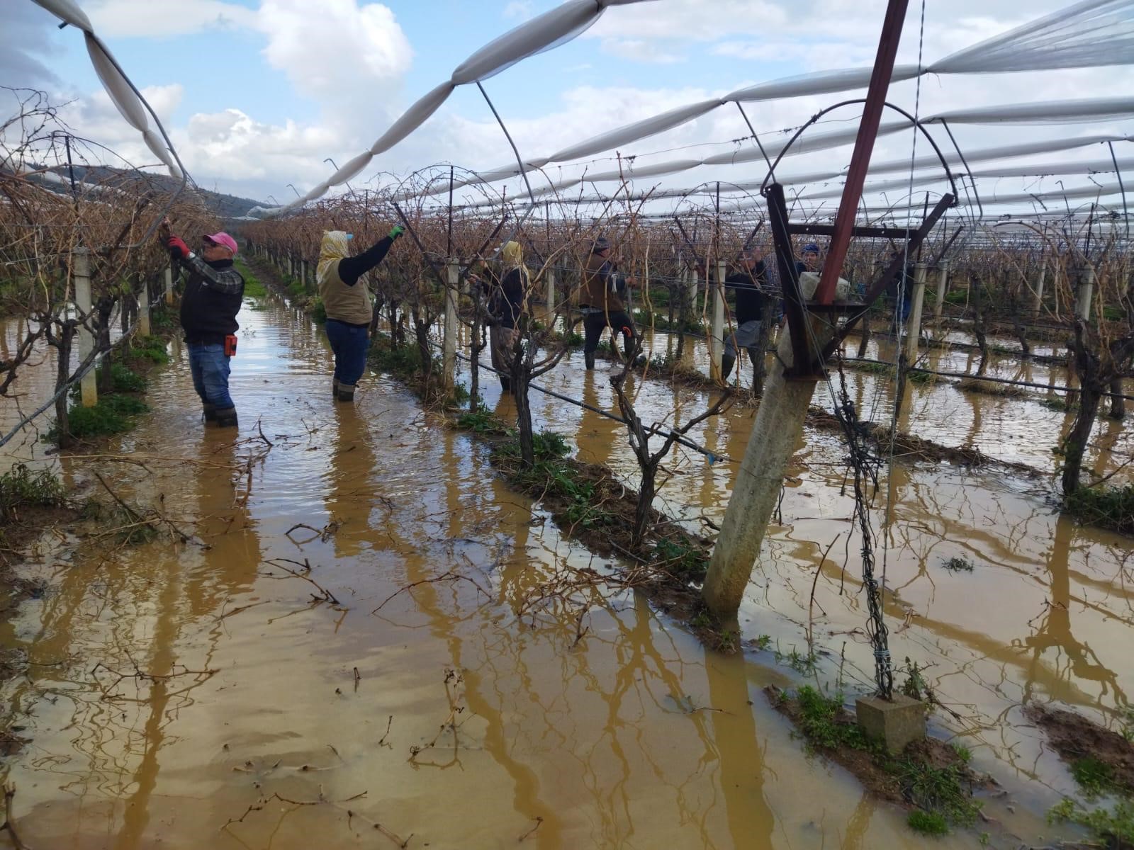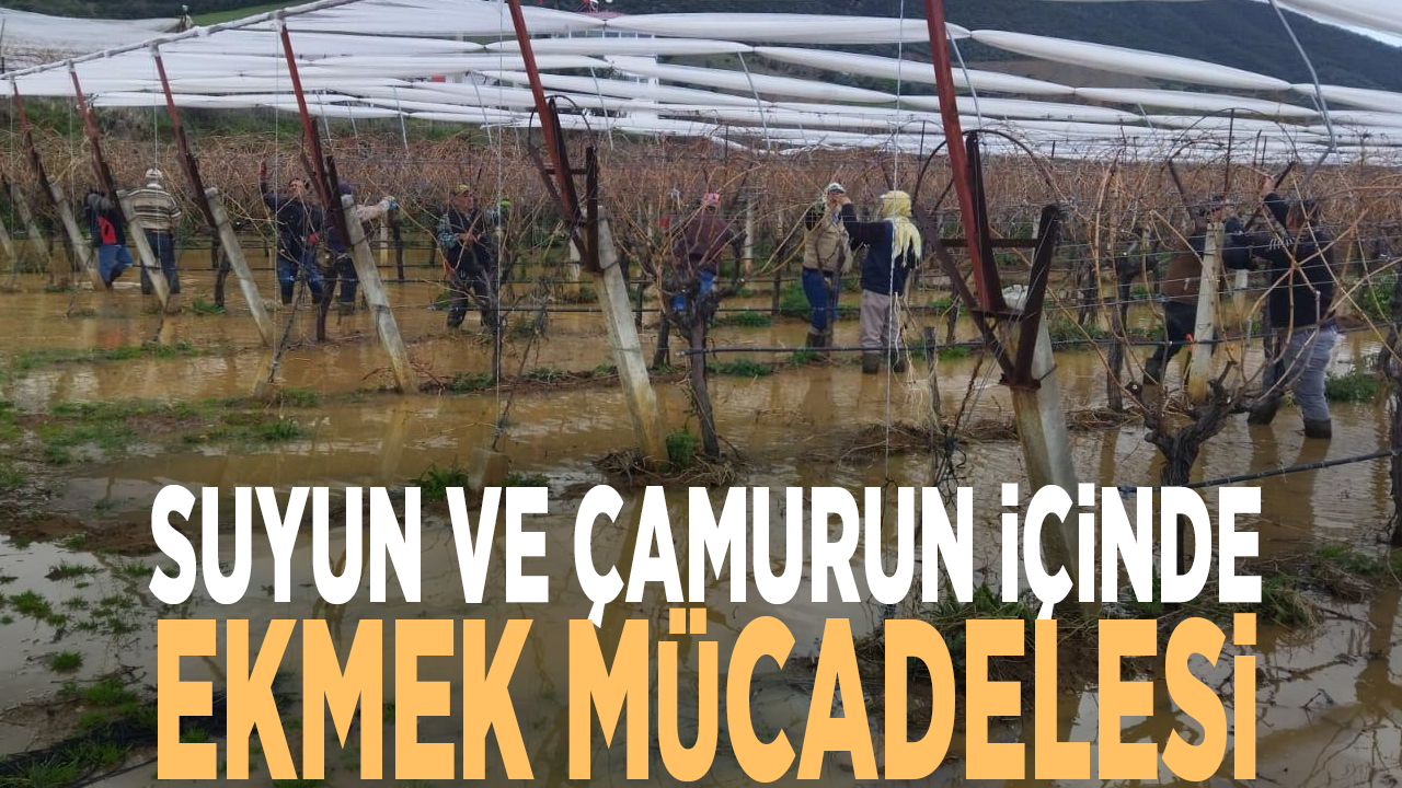 Sarıgöl ilçesine bağlı Emcelli Mahallesi Sütmezli mevkisinde bağların göle dönmesine rağmen budama yapan işçiler, ekmek parası için suyun ve çamurun içinde mesai yapıyor. Bağlarda oluşan su birikintileri, çalışma şartlarını oldukça zorlaştırırken, işçiler işlerini aksatmadan sürdürmeye devam ediyor.