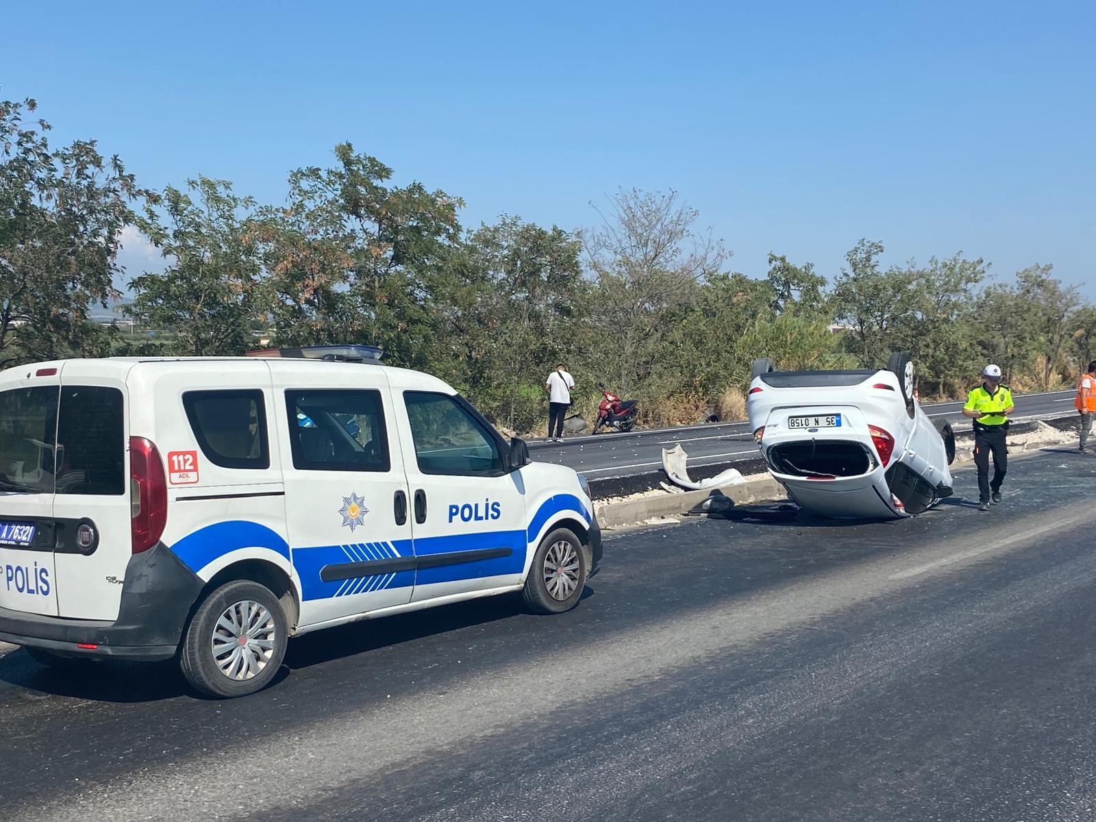 Kaza bugün saat 15.30 sıralarında Turgutlu Manisa yolu üzerinde meydana geldi. Işık V. (42) idaresindeki 35 N 0158 plakalı otomobil sürücüsünün direksiyon hakimiyetini kaybetmesi sonucu önce bariyerlere çarptı ardından da takla atarak karşı şeride geçti.