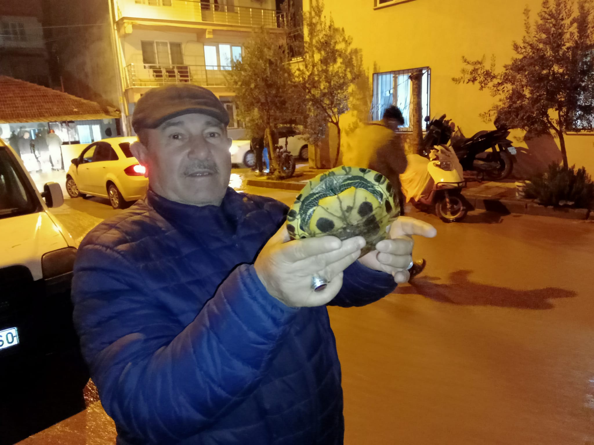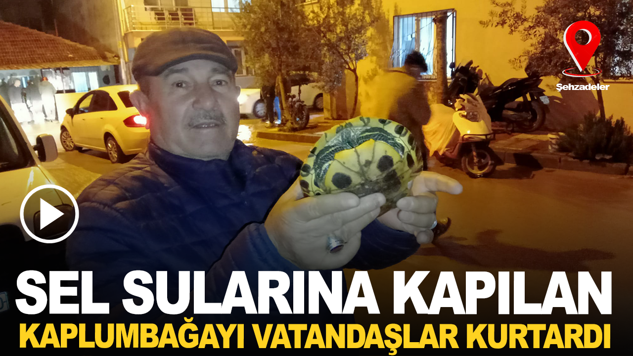 Sel sularına kapılan bir kaplumbağayı fark eden mahalle sakini, hayvanı sudan çıkararak güvenli alana aldı.