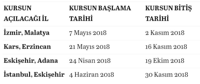 Kursa son başvuru tarihi 21 Şubat 2018. Mülakatlar ise 5 Mart ile 6 Nisan 2018 arasında yapılacak. Kursta KPSS 93 puan türünden en az 60 alan adaylar mülakata çağrılacak.