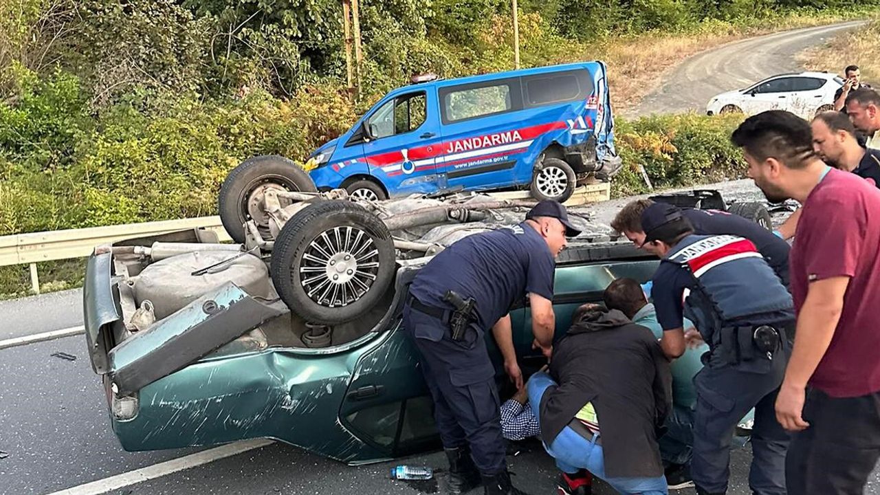 Kaza, akşam saatlerinde Akçakoca ile Alaplı arasındaki Ölüce mevkiinde yaşandı. Akçakoca’dan Alaplı yönüne giden 67 ZF 676 plakalı Tofaş marka otomobil, denetim için yol kenarında duran jandarma aracına arkadan çarptı. Çarpmanın etkisiyle otomobil sürüklenip takla attı.