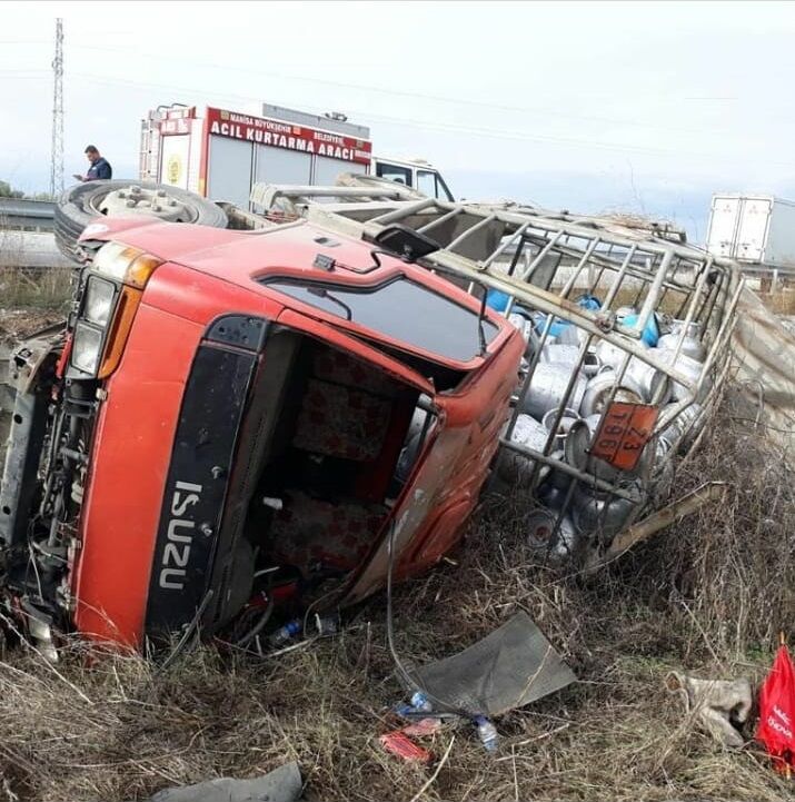 Edinilen bilgiye göre Akhisar yönüne seyir halinde olan A.K idaresindeki 45 K 5510 plakalı tüp kamyonu direksiyon hakimiyetibi kaybetmesi sonucu devrildi.