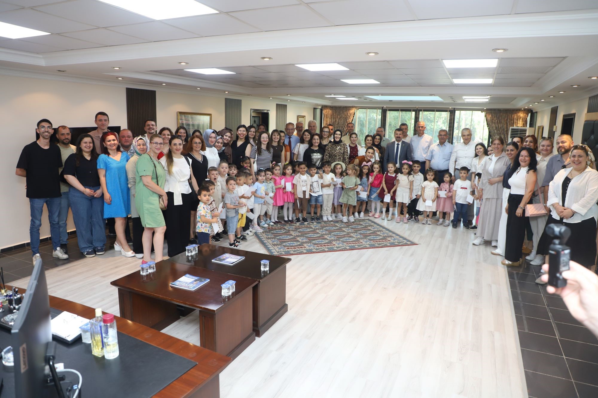 Minik öğrencilerden Başkan Çetin Akın’a bayram ziyareti