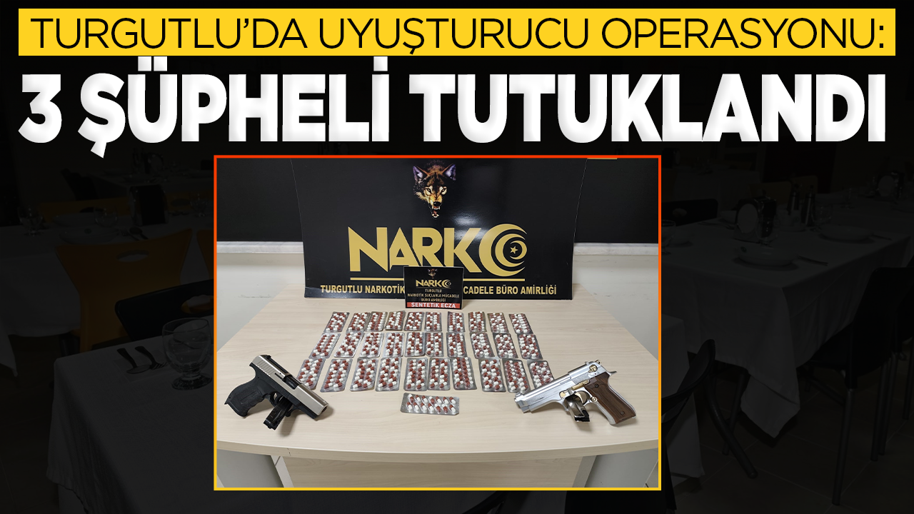 Manisa'nın Turgutlu ilçesinde 13 Ekim tarihinde yapılan çalışmalar kapsamında, 31 flaster halinde toplam 434 adet sentetik ecza ile 2 adet ruhsatsız silah ele geçirildi. Operasyonda 3 kişi yakalandı. Gözaltına alınan H.O. (25), M.K. (27) ve F.S. (25) isimli şüpheliler, emniyetteki işlemlerinin ardından Turgutlu Cumhuriyet Başsavcılığına sevk edildi. Şüpheliler, çıkarıldıkları adli mercilerce "Uyuşturucu veya uyarıcı madde ticareti yapmak" suçundan tutuklanarak cezaevine gönderildi.