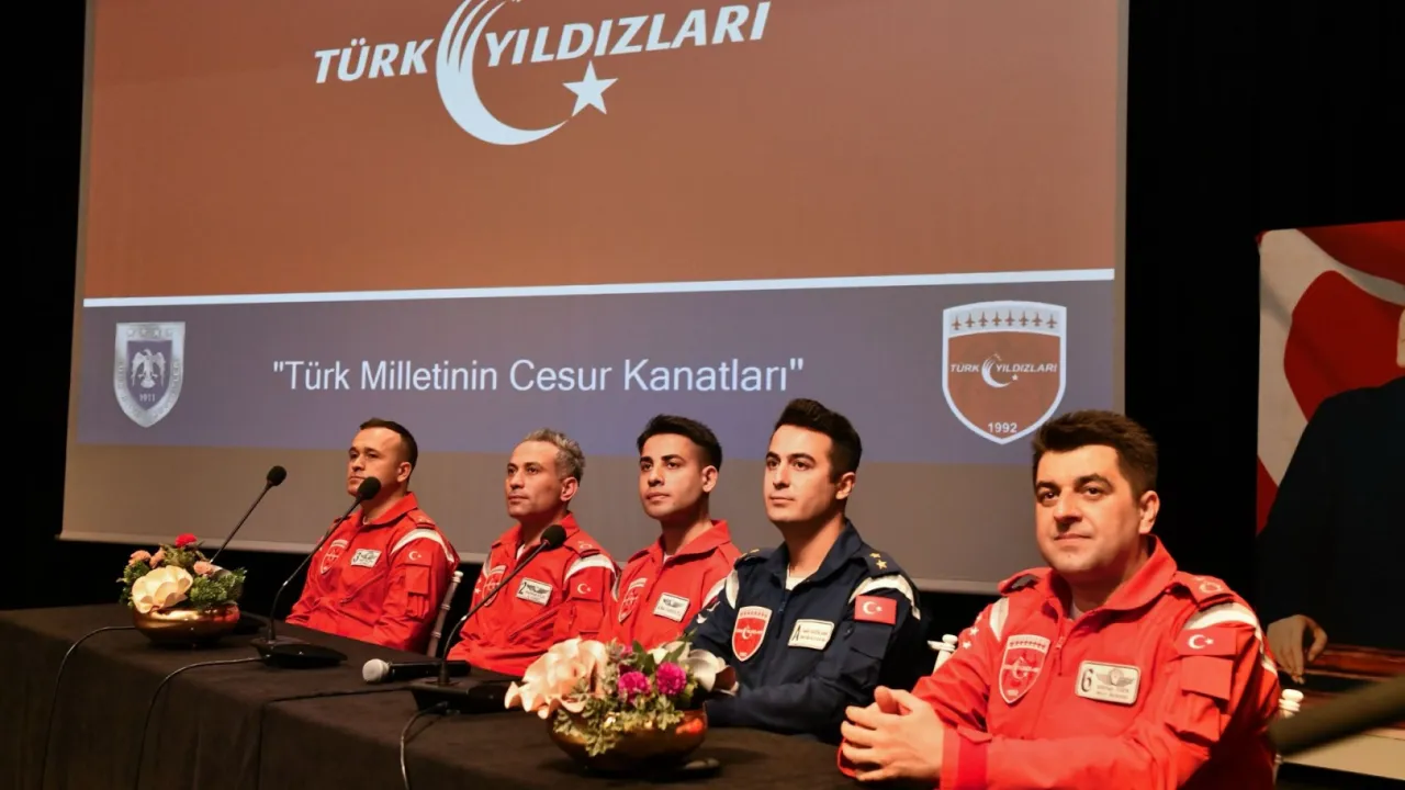 Türk Hava Kuvvetleri’nin gururu Türk Yıldızları, kariyer günleri kapsamında Bursa'nın Mustafakemalpaşa ilçesinde öğrencilerle bir araya geldi. Kültür Merkezi'ndeki söyleşide, pilotlar mesleklerine dair deneyimlerini paylaşırken gençlerin havacılığa dair sorularını yanıtladı.BURSA (İGFA) - Bursa'nın Mustafakemalpaşa'daki etkinliğe katılan 8 Türk Yıldızları pilotu, hava akrobasi ekibinin disiplinli çalışma süreçlerini, uçuş eğitimlerini ve havacılık mesleğinin gerekliliklerini detaylı bir şekilde anlattı.