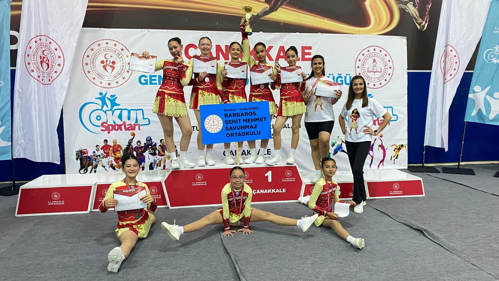 Gençlik ve Spor Bakanlığı tarafından Çanakkale’de düzenlenen Okul Sporları Step Aerobik Jimnastik Yıldızlar Türkiye Şampiyonası’nda da Yunusemre Barbaros Şehit Mehmet Savunmaz Ortaokulu Türkiye ikincisi olarak büyük bir başarıya imza attı.