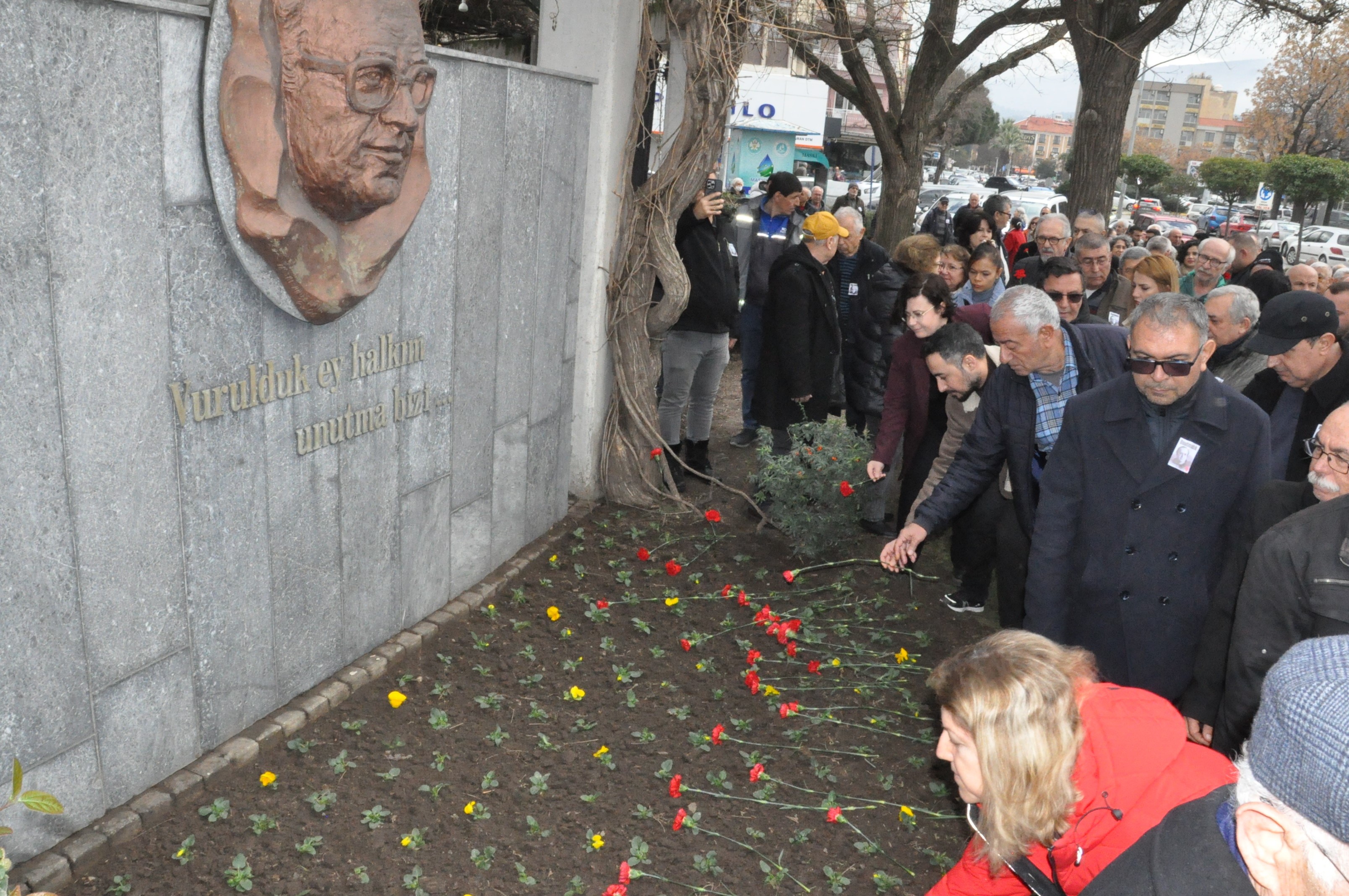 Saygı duruşunda bulunulması ve İstiklal Marşı’nın okunmasıyla başlayan törene katılanlar, Mumcu’nun anıtına karanfil bıraktı.