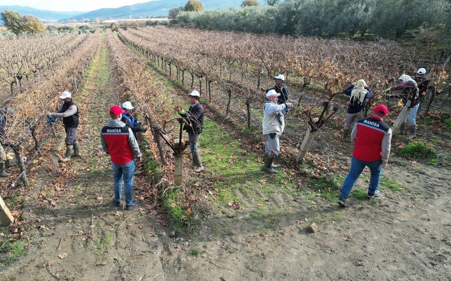 Manisa'nın Sarıgöl ilçesinde üzüm bağlarında hummalı bir şekilde devam eden budama çalışmalarına, Manisa İl Tarım ve Orman Müdürlüğü ile İlçe Tarım ve Orman Müdürlüğü teknik ekipleri sahada destek veriyor.